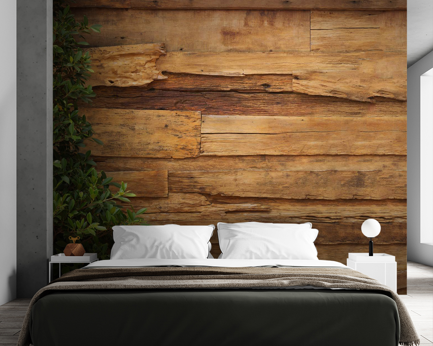 Gäste könnten sich fragen, ob Sie die Wand selbst gebaut haben – so überzeugend ist sie! Sie ist perfekt geeignet, um Tiefe und Struktur zu schaffen – wie Ihr persönliches Waldrefugium, nur ohne die Splitter. Bringen Sie sie im Schlafzimmer an, um ein kuscheliges, warmes Gefühl zu erzeugen, oder in Ihrem Büro, um eine einzigartige Kulisse zu schaffen, die mit Sicherheit für Gesprächsstoff sorgt. Es geht darum, einen Raum zu schaffen, der sowohl altmodisch als auch frisch wirkt – ein wenig rauer Charme und viel Herz. Genießen Sie ein Stückchen Natur, nur ohne die Käfer!