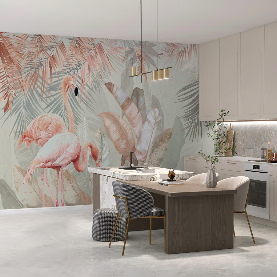 Perfekt, um einen Hauch von Natur in jeden Raum zu bringen – sei es Ihr Wohnzimmer, Ihr Schlafzimmer oder sogar eine gemütliche Leseecke. Die Farben sind so beruhigend und doch knallig genug, um ein auffälliges visuelles Statement zu setzen. Und diese Flamingos? Sie sind einfach zu charmant mit ihrer ruhigen Haltung und den zarten rosa Federn. Diese Wandmalerei dekoriert nicht nur, sie verwandelt. Plötzlich wird die banale Wand zu einer Leinwand mit der Schönheit der Natur – lebendig und einladend.