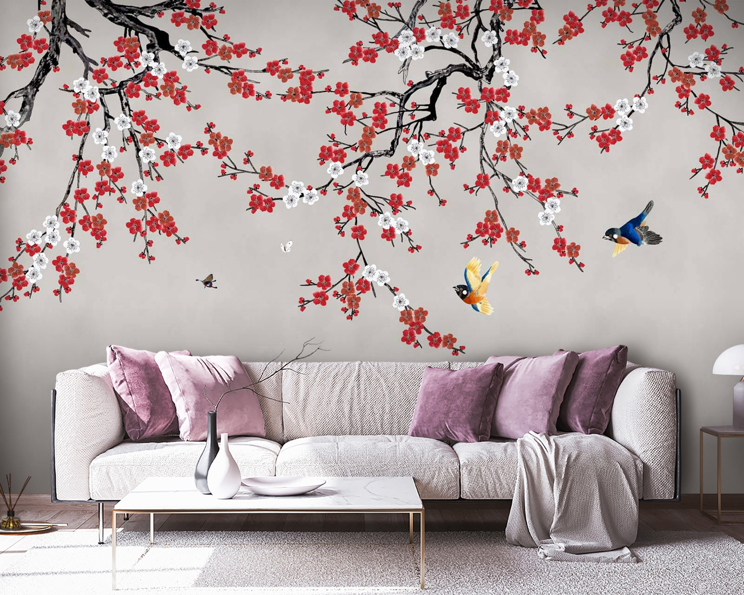 Verwandeln Sie Ihren Raum mit dieser bezaubernden Fototapete, auf der lebhafte Vögel inmitten zarter Kirschblüten schweben. Stellen Sie sich vor, Sie wachen jeden Tag umgeben von der Schönheit der Natur auf, während diese gefiederten Freunde mühelos durch die Luft gleiten. Der sanfte Hintergrund steht in perfektem Kontrast zu den kräftigen Farbtönen und bringt Leben und Energie in jeden Raum. Es ist, als hätte man das ganze Jahr über ein kleines Stück Frühling direkt an der Wand. Stellen Sie sich gemütliche Abende vor, an denen die Fototapete als atemberaubende Kulisse für Zusammenkünfte dient, oder einen ruhigen Morgen mit einer Tasse Kaffee in der Hand. Dieses Wandbild dekoriert nicht nur, es inspiriert auch zu Geschichten, Träumen und guter Laune. Ob im Schlafzimmer, im Wohnzimmer oder sogar in einer verspielten Ecke, es lädt Wärme und Fröhlichkeit ein. Wäre es nicht großartig, sich einfach zurückzulehnen und den herrlichen Anblick auf sich wirken zu lassen?