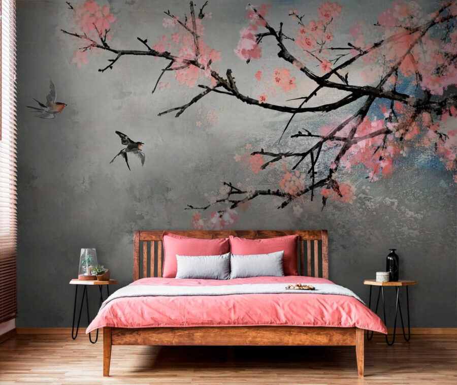 Mit den zarten rosa Blüten und den anmutigen Zweigen ist es, als hätte man einen immerwährenden Frühlingstag an der Wand. Stellen Sie sich vor, Sie trinken einen Tee, fühlen sich inspiriert und hören fast das sanfte Flattern von Flügeln. Es ist perfekt für eine Leseecke oder eine Zen-Ecke. Außerdem hat es diesen magischen Touch – ein Kunstwerk, das sich lebendig anfühlt und jedes Mal ein Lächeln hervorruft, wenn man es sieht. Ganz gleich, ob Sie Ruhe oder Kreativität suchen, dieses Wandbild ist Ihre Eintrittskarte zu einer wunderschönen Flucht.
