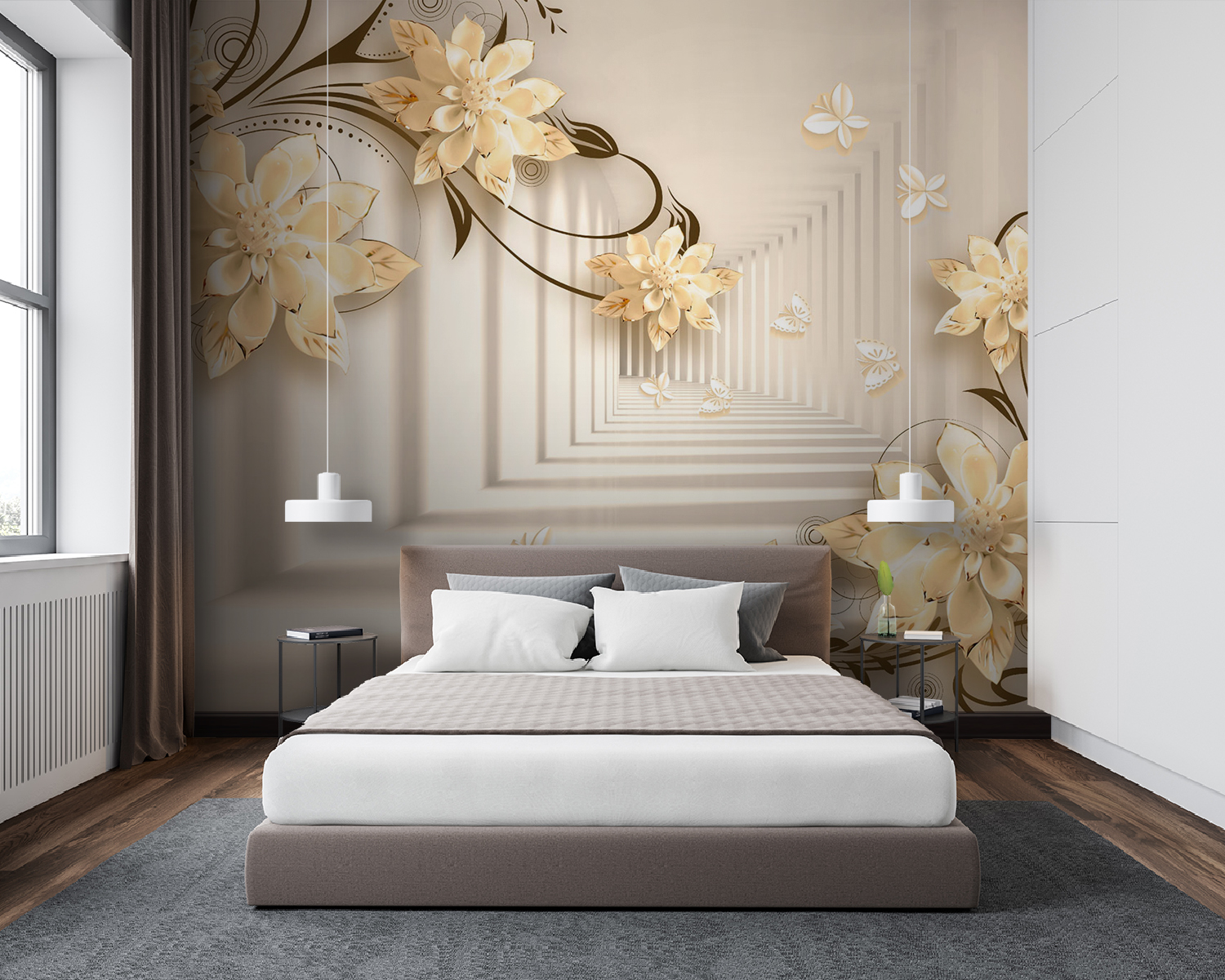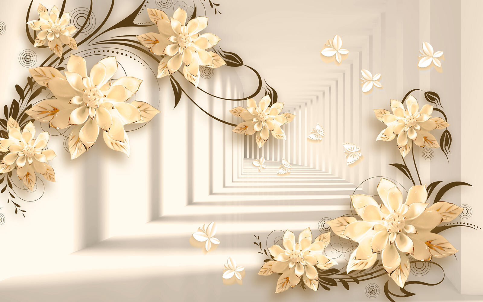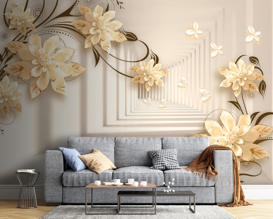 Fototapeten Elegantes florales Design mit Schmetterlingen Fototapeten Elegantes florales Design mit Schmetterlingen