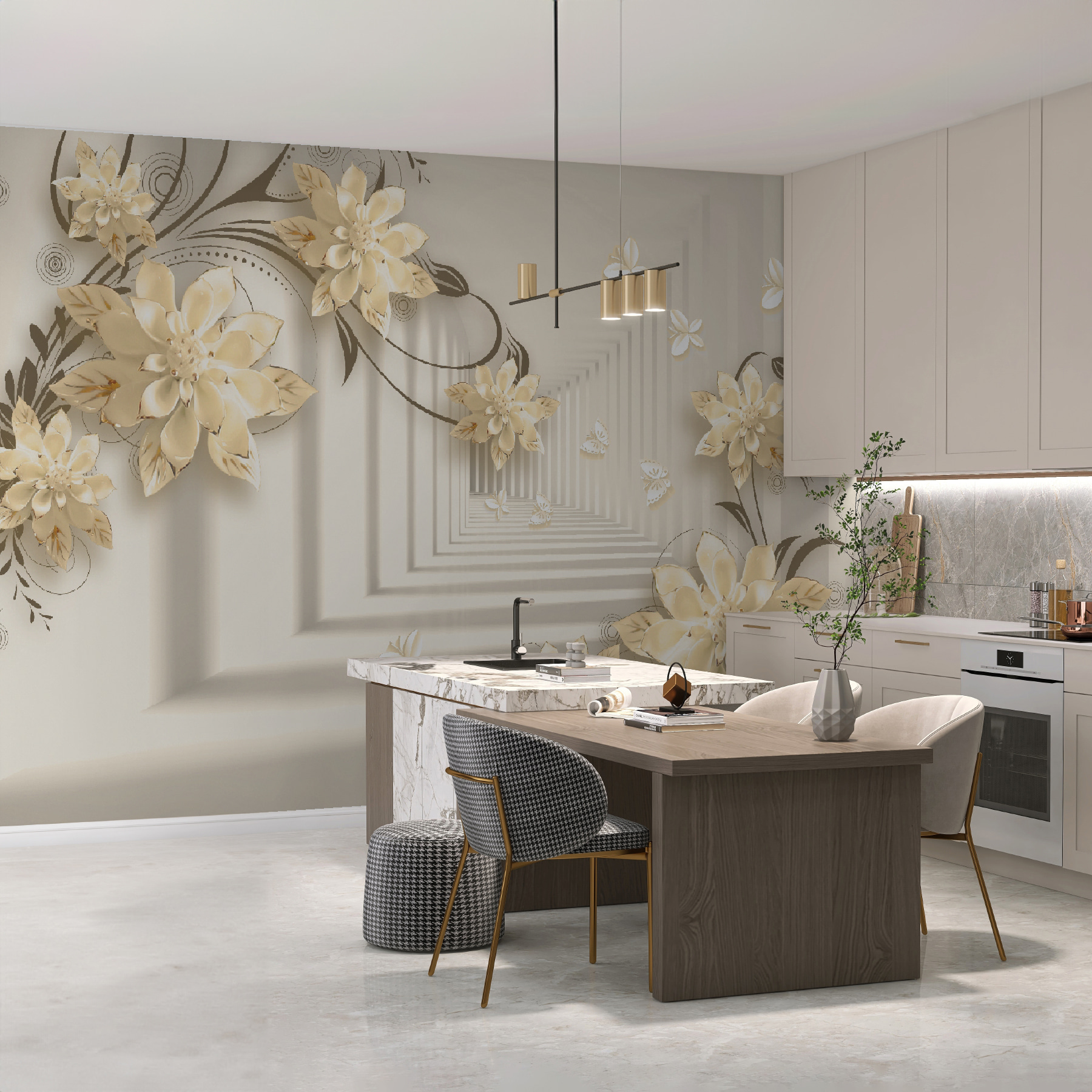 Sehen Sie sich vor dem Kauf genau an, wie Ihr Raum mit einer neuen Tapete aussehen wird. Professionelle Visualisierung durch erfahrene Designer ohne Kosten oder Kaufverpflichtung.