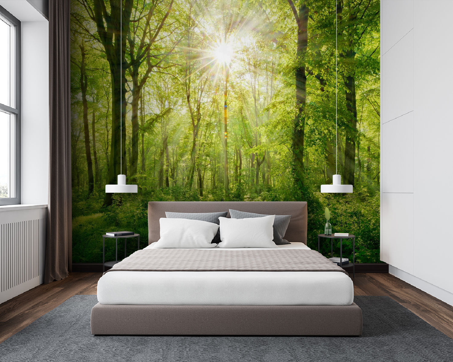Verwandeln Sie Ihren Raum mit dieser fesselnden Fototapete, die Sonnenstrahlen zeigt, die durch üppige Bäume dringen. Stellen Sie sich vor, Sie betreten Ihren Raum und fühlen sich wie in einem ruhigen Wald – der ultimativen Entspannungszone der Natur. Die leuchtenden Grüntöne laden zu einer ruhigen Atmosphäre ein, fast so, als ob Sie das sanfte Rascheln der Blätter hören könnten. Ob in Ihrer Leseecke oder an einem belebten Treffpunkt, dieses Wandbild spielt den Sinnen einen herrlichen Streich. Es ist wie ein frischer Wind an Ihren Wänden und bietet die perfekte Kulisse für gemütliche Gespräche oder ruhige, einsame Momente. Und es ist einfach schön zu denken, dass ein Stück Natur so viel Freude ins Haus bringen kann.