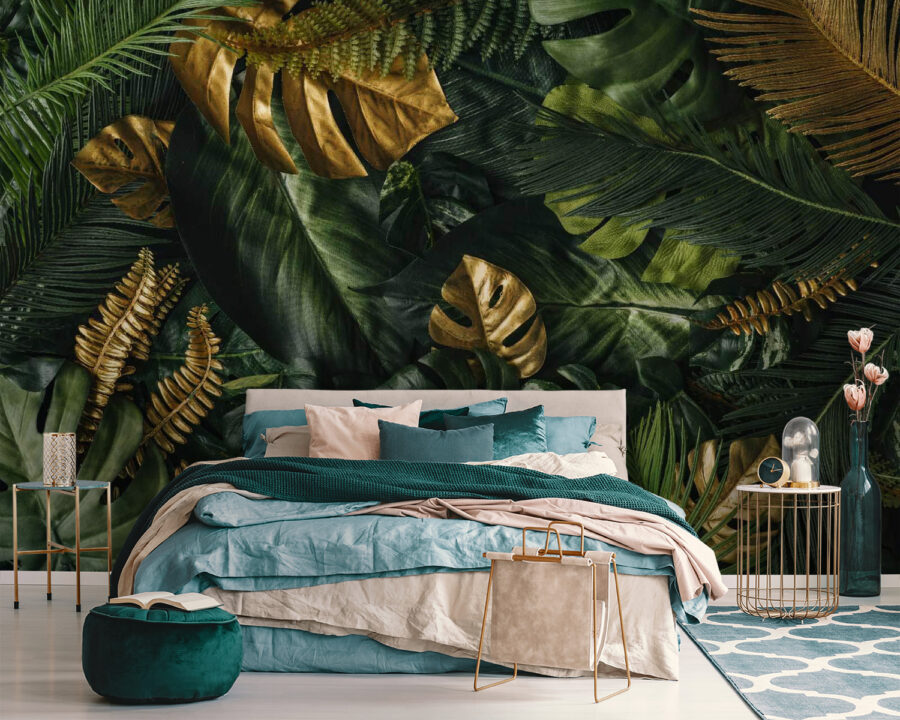 Verwandeln Sie eine triste Wand in ein üppiges Tropenparadies mit diesem atemberaubenden Wandbild mit leuchtenden Blättern in satten Grüntönen. Stellen Sie sich vor, Sie betreten Ihr Zuhause und haben sofort das Gefühl, sich in einem ruhigen Dschungelrefugium zu befinden. Jedes Blatt scheint die Geheimnisse der Natur zu flüstern und lädt Sie zum Entspannen ein. Freunde werden sich gerne bei Ihnen aufhalten, um diese erfrischende Atmosphäre zu genießen. Dieses Wandbild eignet sich perfekt für ein gemütliches Wohnzimmer oder ein ruhiges Schlafzimmer und bringt einen Hauch von Natur ins Haus – vielleicht vergessen Sie sogar für eine Sekunde die Arbeit. Stellen Sie sich vor: Sie schlürfen einen Drink und Ihre Lieblingspflanzen bilden den perfekten Hintergrund. Wer hätte gedacht, dass sich eine Wand so lebendig anfühlen kann?