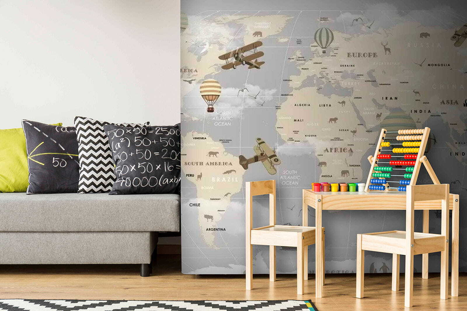 Perfect for a cozy nook or a lively play area, this mural brings warmth and curiosity. It’s like having a world map that invites exploration every single day. Friends might even find themselves planning their next getaway just by gazing at it! A little bit of history, a lot of charm—this mural makes everyday moments a touch more magical.