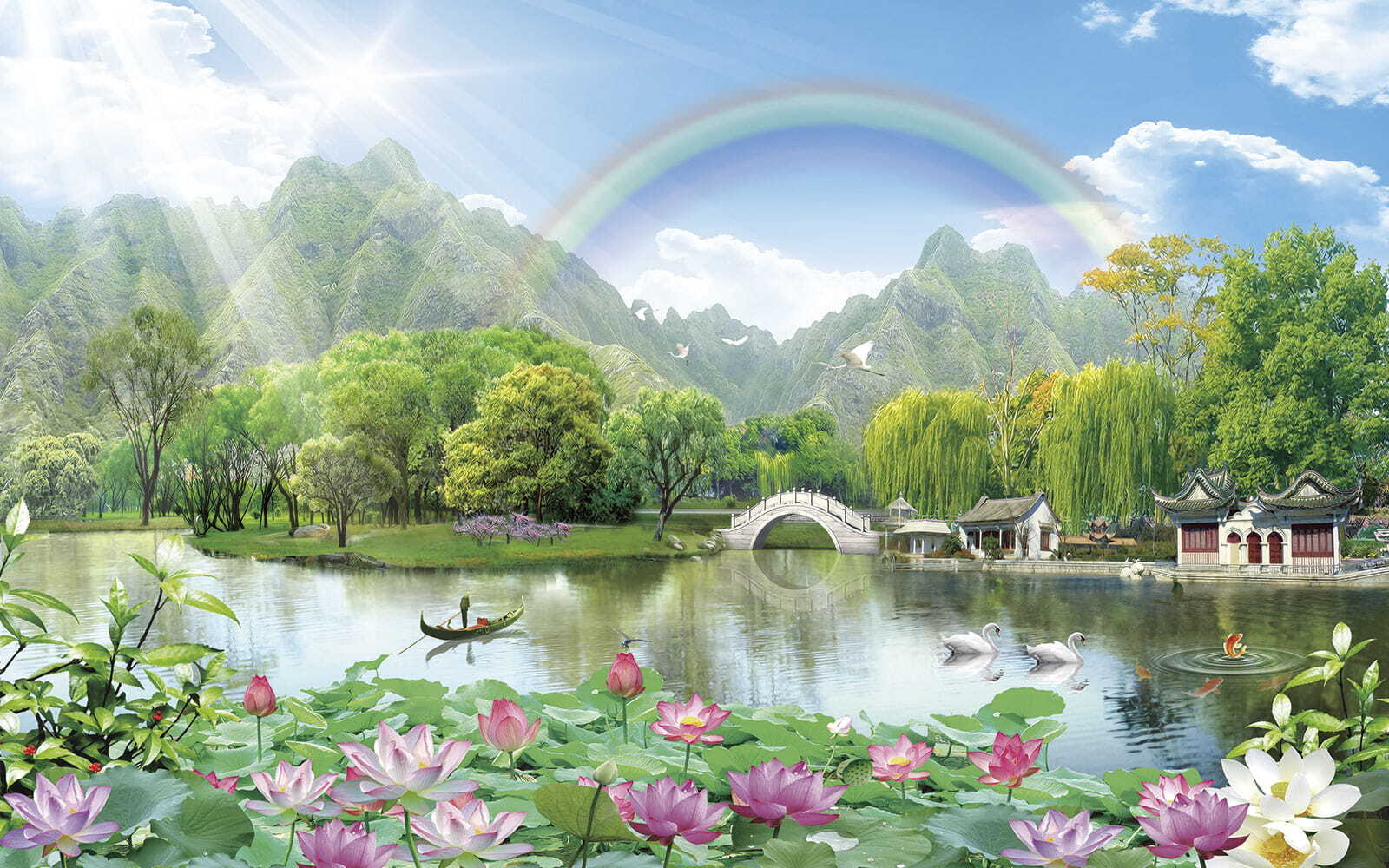 Stellen Sie sich vor, Sie betreten einen Raum und werden in ein ruhiges Paradies am See versetzt… Können Sie es fühlen? Genau das tut diese Fototapete. “Serene landscape with lotus flowers” ist wie ein sanfter Seufzer für die Seele – beruhigend und friedlich. Perfekt für Kinderzimmer oder jeden Raum, der einen friedlichen Touch braucht. Stellen Sie sich vor, Sie entspannen sich nach einem hektischen Tag, genießen das sanfte Licht der untergehenden Sonne, die Luft ist erfüllt vom süßen Duft der Lotosblumen… Sie werden sich jeden Tag wie im Urlaub fühlen! Außerdem ist es ein schöner Gesprächsanlass für Gäste (oder eine perfekte Instagram-Kulisse). Ganz gleich, ob Sie ein Babyzimmer dekorieren oder einen Hauch von Natur in Ihren Wohnraum bringen, dieses Wandbild wird Sie jedes Mal zum Lächeln bringen, wenn Sie es sehen.