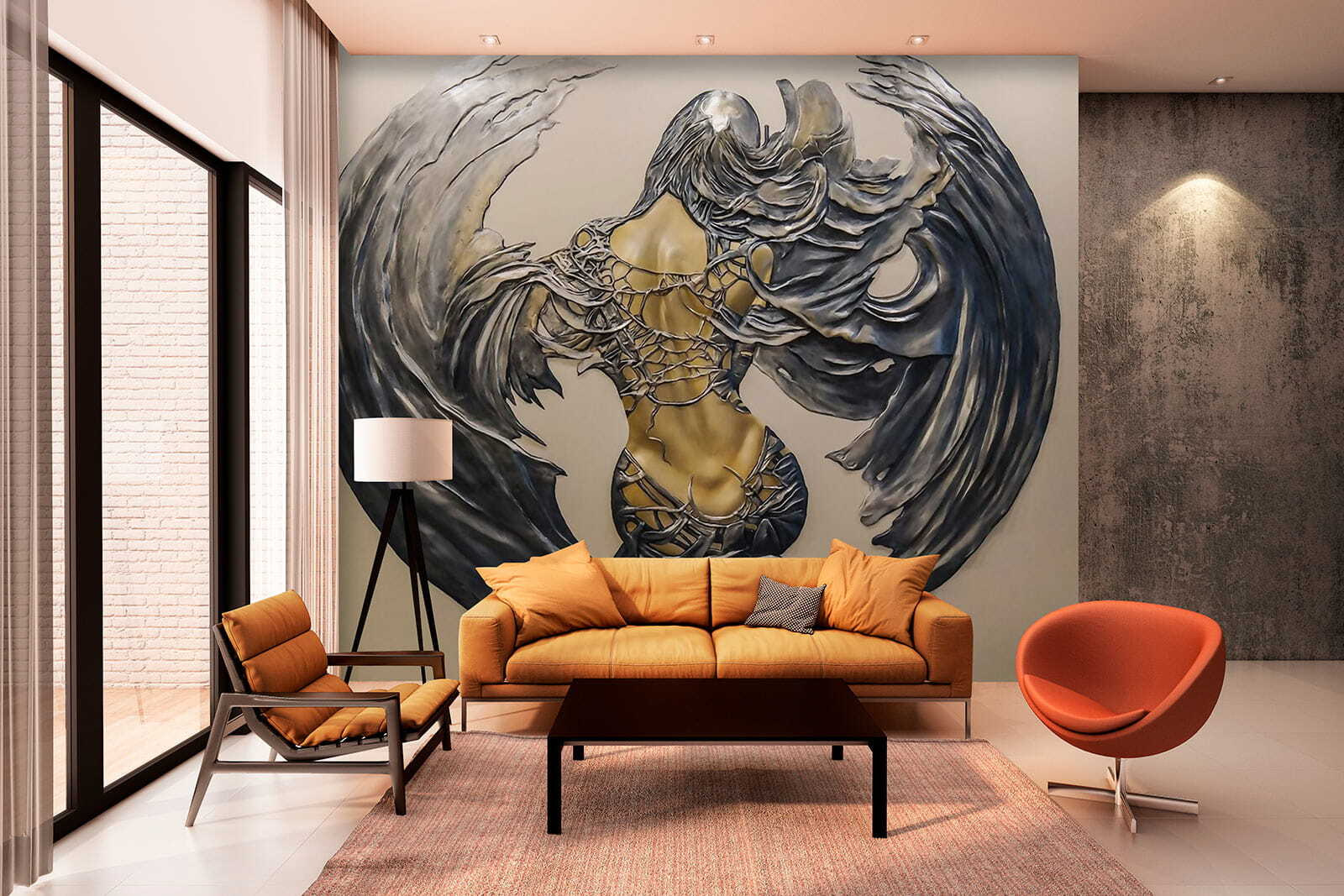 Möchten Sie Ihre Wände mit etwas Außergewöhnlichem aufpeppen? Dann sehen Sie sich diese atemberaubende Wandmalerei einer Frau in 3D an. Perfekt, um jedem Raum einen Hauch von Eleganz und Faszination zu verleihen! Stellen Sie sich die Textur und die Tiefe vor – es fühlt sich fast so an, als könnten Sie es anfassen. Die gedämpften Farben machen es vielseitig einsetzbar und passen in viele verschiedene Dekors. Jeder, der Ihr Haus betritt, wird sich fragen, wer der Künstler ist. Es ist, als hätten Sie ein Kunstwerk aus dem Museum in Ihrem Wohnzimmer. Das ist nicht nur ein Wandbild – es ist ein Erlebnis.