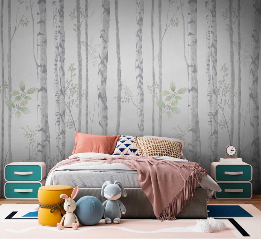 Verwandeln Sie jeden Raum mit der bezaubernden Wandmalerei von Birken, die von sanften grünen Blättern geschmückt sind. Stellen Sie sich vor, Sie betreten einen friedlichen Wald, in dem die Natur flüstert und das Sonnenlicht durch die Blätter tanzt. Dieses Design sorgt für eine heitere Stimmung und eignet sich perfekt für ein Kinderzimmer oder eine gemütliche Leseecke. Die sanften Farben bieten einen erfrischenden Kontrast zu den Wänden und vermitteln ein leichtes, luftiges Gefühl. Ob Geschichtenerzählen oder Tagträumen, es lädt die Fantasie ein. Stellen Sie sich vor, wie Kinder kichernd zwischen den Stämmen Verstecken spielen – jeder Blick auf diese Bäume ist wie eine kleine Flucht in die Umarmung der Natur.