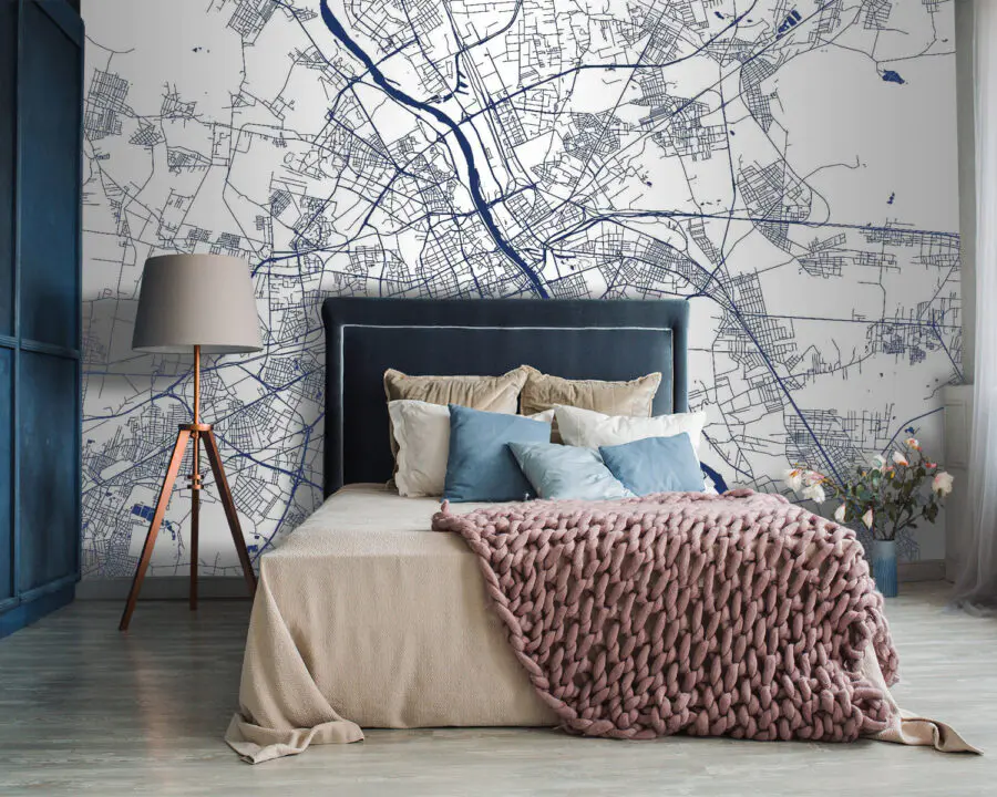 Einen Raum in etwas Besonderes zu verwandeln, ist so einfach wie das Anbringen dieser Wandtapete mit einem Stadtplan. Es ist wie ein Portal zum Abenteuer direkt in Ihrem Wohnzimmer. Stellen Sie sich die Geschichten vor, die sich entfalten könnten, wenn Freunde zusammenkommen und ihre Finger entlang der gewundenen Straßen und mäandernden Flüsse führen. Jeder kleine Abschnitt könnte eine Erinnerung wecken – vielleicht ein Lieblingscafé oder einen versteckten Park. Die kühnen marineblauen Linien vor einem klaren Hintergrund verleihen dem Ganzen einen Hauch von Raffinesse, ohne dabei an Gemütlichkeit einzubüßen. Ihre Wände sind nicht mehr nur Wände, sondern bieten unendliche Möglichkeiten und einen Hauch von Nostalgie. Lassen Sie sich von dieser Fototapete zum Träumen oder zur Planung des nächsten Ausflugs inspirieren.