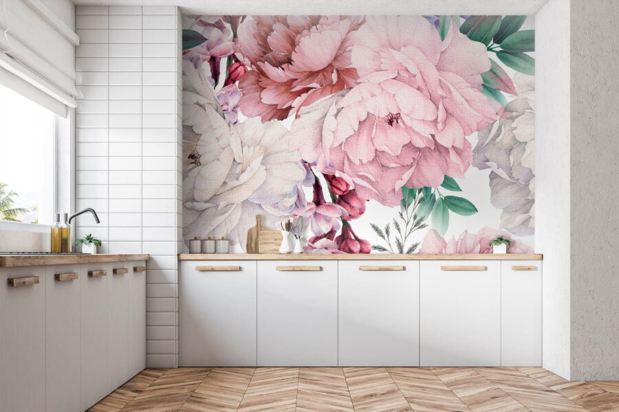 Verwandeln Sie Ihren Raum mit dieser atemberaubenden Fototapete, die eine schöne Mischung aus Aquarellblüten zeigt. Stellen Sie sich vor, Sie betreten einen Raum, in dem Pfingstrosen und sanfte Farbtöne sofort die Stimmung heben – wie ein Garten der Freude, der sich über die Wände ergießt. Die zarten Blütenblätter dieses Wandbildes strahlen Wärme und Gelassenheit aus und verleihen jedem Raum eine einladende Atmosphäre. Es eignet sich perfekt für gemütliche Ecken oder lebhafte Wohnzimmer und man kann sich leicht vorstellen, wie sich die Leute in den leuchtenden Farben verlieren können. Stellen Sie sich vor, Sie treffen sich mit Freunden, bewundern die Kunstwerke und fühlen sich in einer blumigen Umarmung wie zu Hause. Das ist nicht nur Dekoration, sondern ein Grund, jeden Tag zu lächeln.