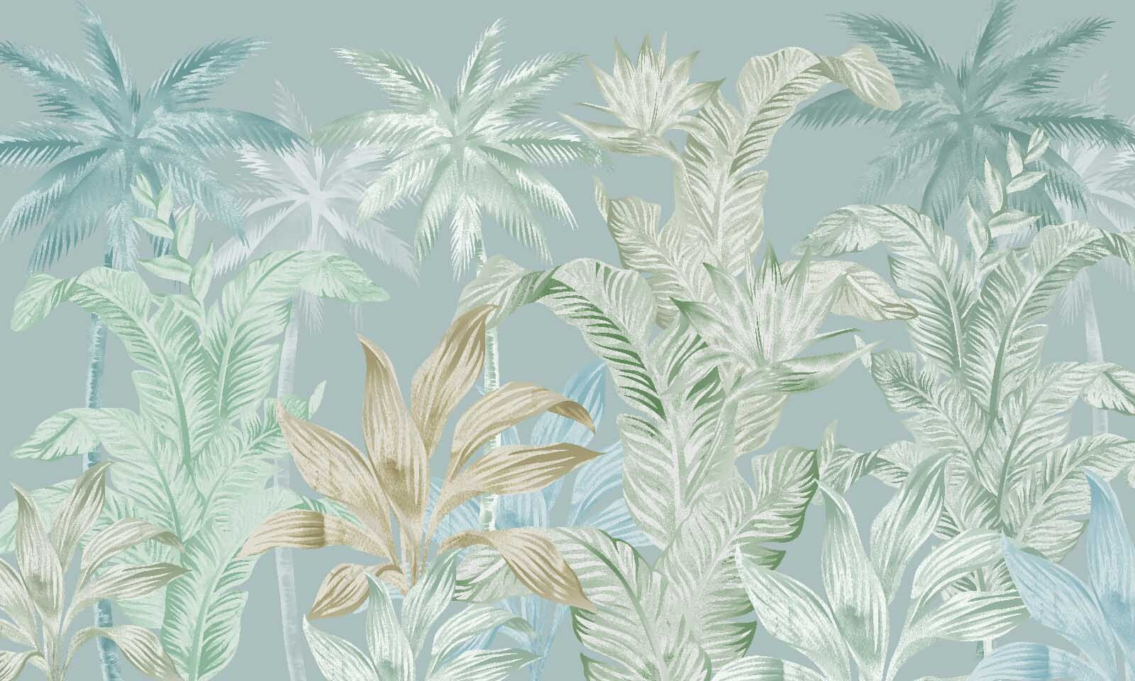 Verwandeln Sie eine langweilige Wand in einen tropischen Zufluchtsort mit diesem Wandbild mit Palmen. Stellen Sie sich vor, dass Sie jedes Mal, wenn Sie den Raum betreten, in ein sonnendurchflutetes Paradies eintreten. Die sanften Farben sorgen für eine luftige Atmosphäre – es ist, als hätte man ein Stück Natur im Haus, ohne dass man Pflanzen gießen oder sich mit lästigem Ungeziefer herumschlagen muss. Stellen Sie sich eine gemütliche Ecke mit einem bequemen Sessel und einem guten Buch vor, inmitten dieser üppigen Blätter. Das ist die perfekte Kulisse für gemütliche Nachmittage oder gesellige Zusammenkünfte. Wer braucht schon einen Urlaub, wenn diese Schönheit direkt zu Hause ist? Lassen Sie sich von der kühlen Stimmung anstecken und lassen Sie Ihren Raum ein wenig atmen!