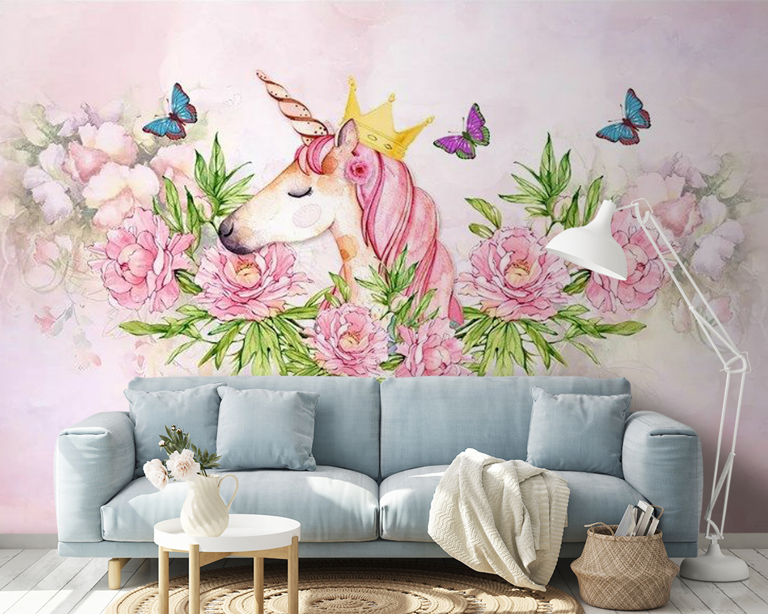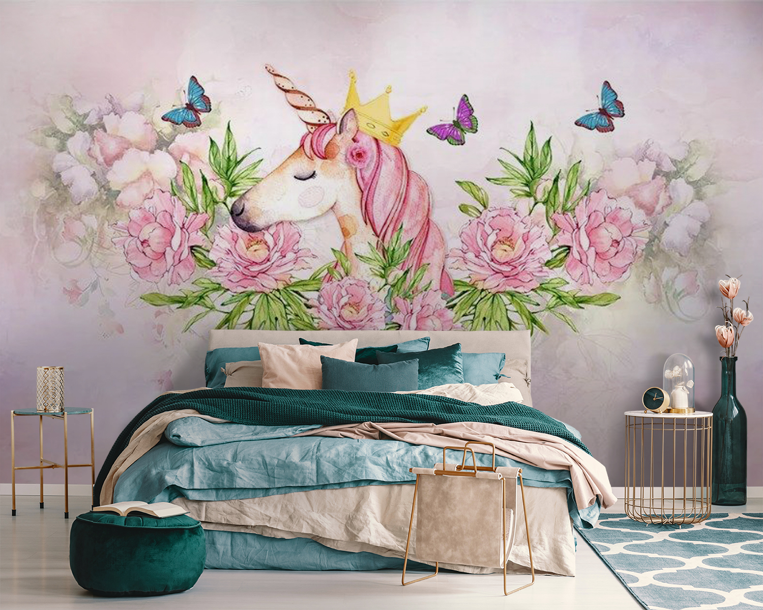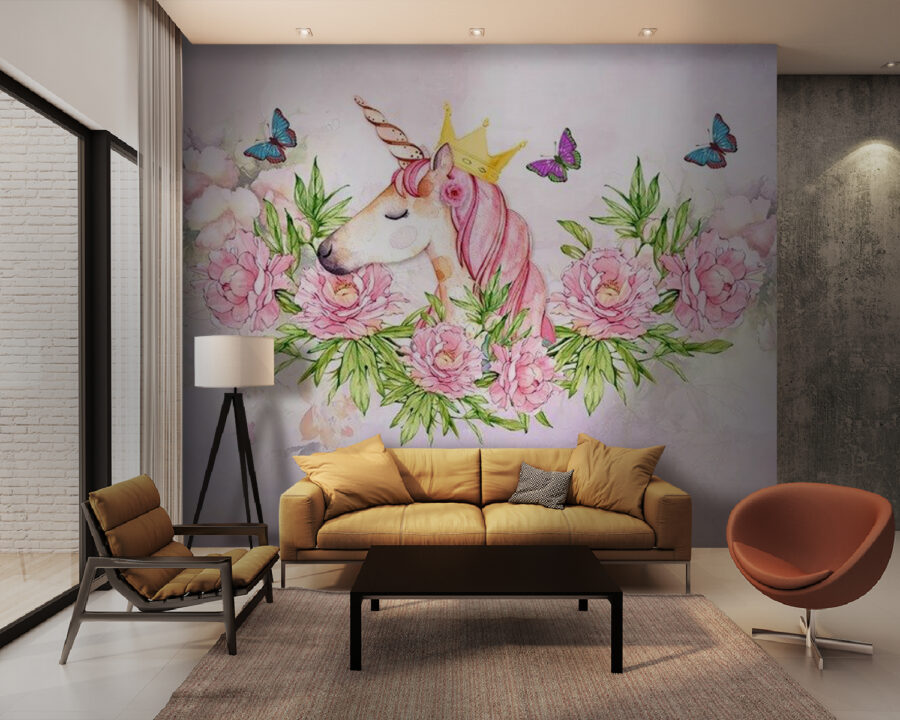 Verwandeln Sie das Kinderzimmer in ein magisches Königreich mit dieser bezaubernden Fototapete, die ein von Schmetterlingen gekröntes und umgebenes Einhorn zeigt. Stellen Sie sich das Entzücken in den Augen Ihrer Tochter vor, wenn sie ihr Zimmer betritt und von dieser wunderlichen Szene begrüßt wird. Es ist, als würde ein Märchen direkt an den Wänden zum Leben erwachen! Die sanften Farben und das bezaubernde Design schaffen eine heitere und doch lebendige Atmosphäre. Stellen Sie sich gemütliche Märchenstunden oder Spielstunden vor, bei denen die Fantasie freien Lauf lassen kann – und Sie brauchen keine glitzernden Schuhe, wenn diese Fototapete den ganzen Zauber mitbringt! Perfekt für jeden kleinen Träumer.