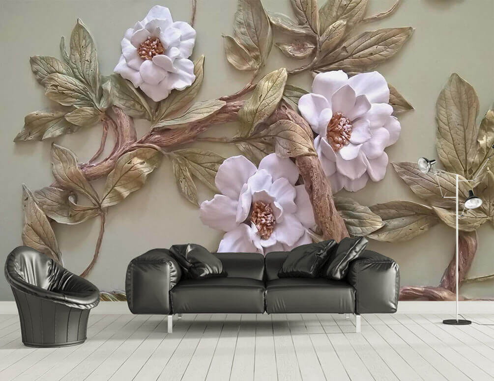 Fototapeten Wanddekoration mit Blumen und Blättern Fototapeten Wanddekoration mit Blumen und Blättern