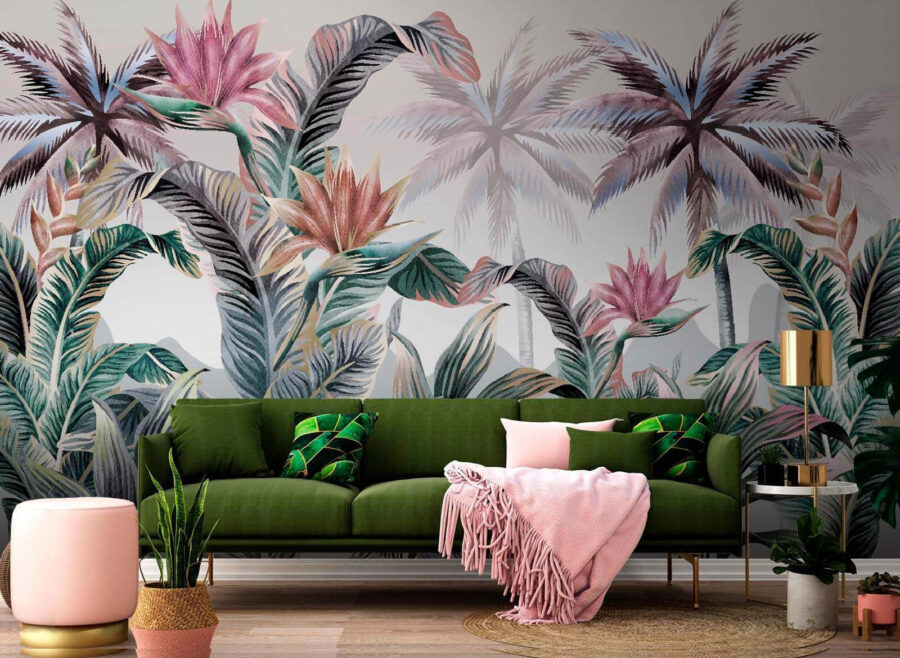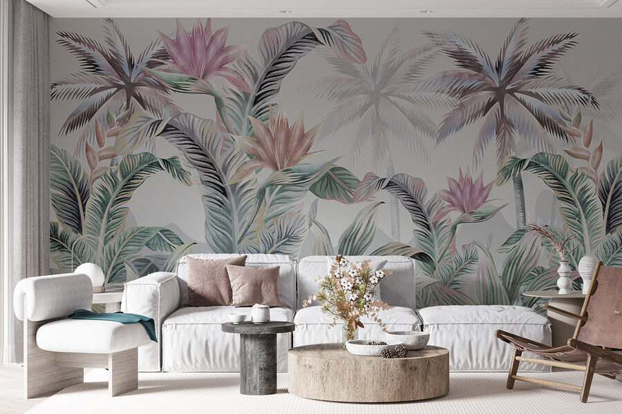 Stellen Sie sich vor, dass Ihr Wohnzimmer mit dieser Fototapete “Tropical Paradise” in ein üppiges tropisches Paradies versetzt wurde. Es ist, als würden Sie in einen Traum eintauchen, in dem lebendige Blätter und exotisches Blattwerk um Sie herum tanzen. Grün-, Rosa- und Blautöne vermischen sich in diesem Aquarell-Meisterwerk und bringen den Zauber der Natur direkt ins Haus. Ganz gleich, ob Sie Ihren Morgenkaffee oder einen frechen Abendcocktail schlürfen, Sie werden das heitere Flüstern einer Dschungelbrise spüren. Perfekt, um eine schlichte Wand in ein lebendiges Statement zu verwandeln – und schon ist Ihr Raum voller Leben und Farbe. Wer braucht schon Flugtickets, wenn man das Paradies zu Hause hat?