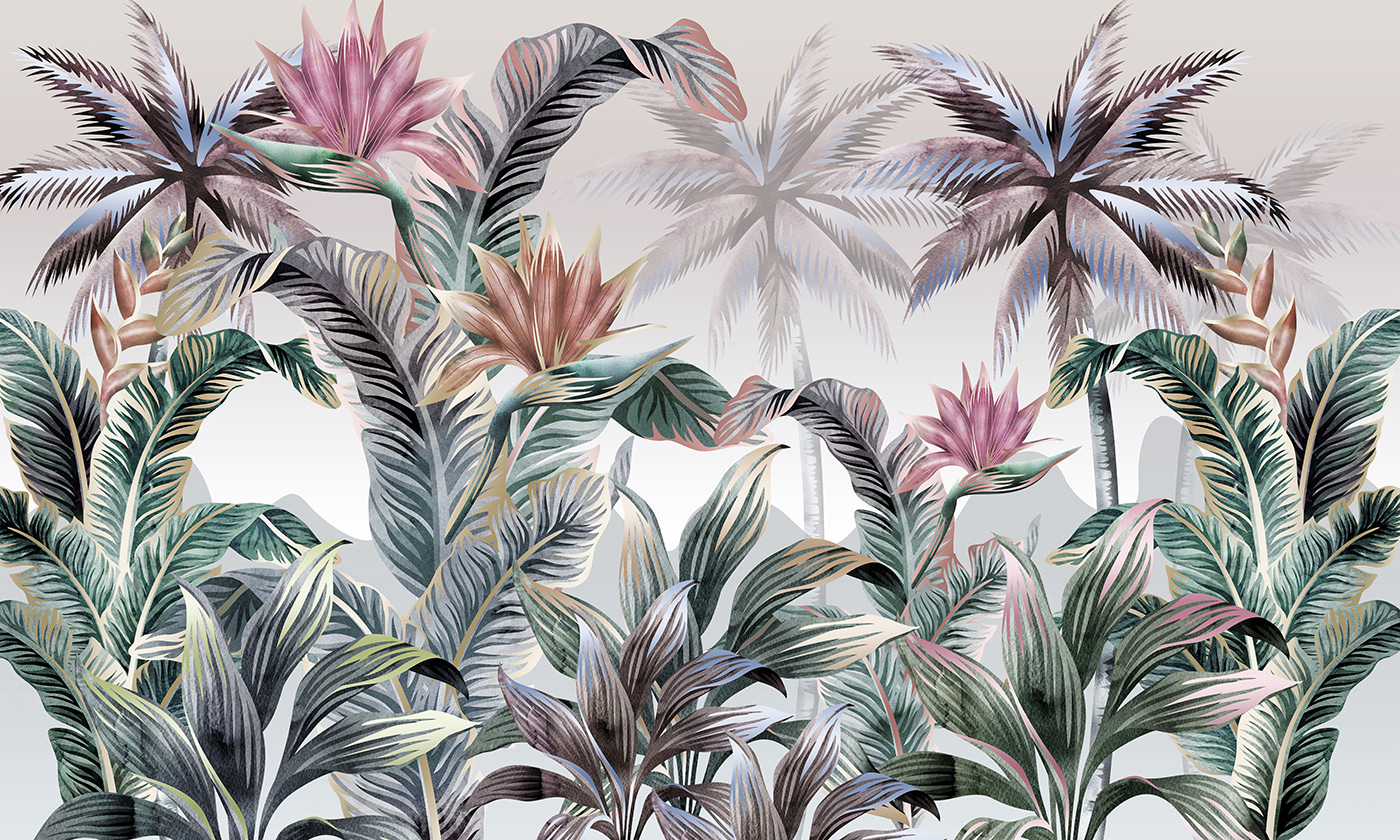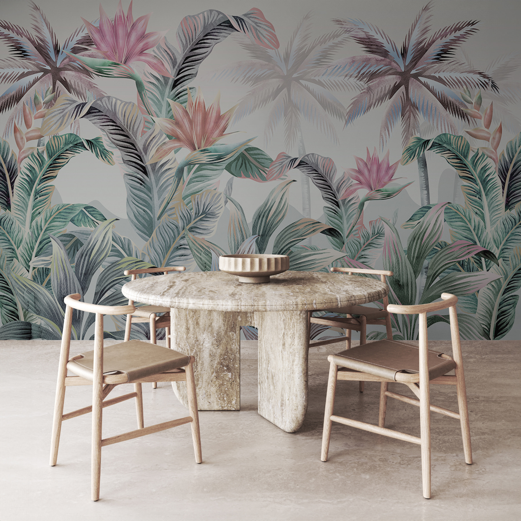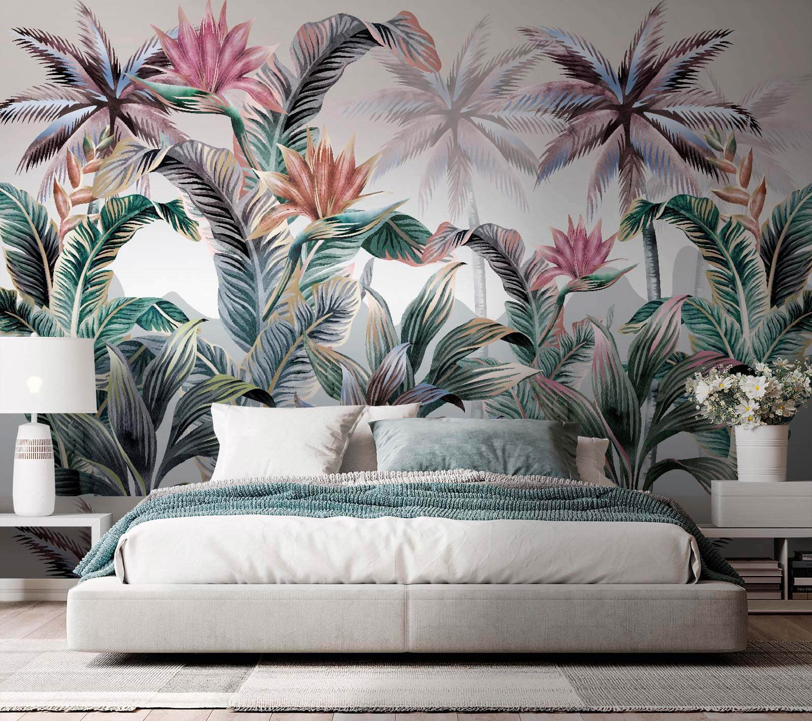Stellen Sie sich vor, dass Ihr Wohnzimmer mit dieser Fototapete “Tropical Paradise” in ein üppiges tropisches Paradies versetzt wurde. Es ist, als würden Sie in einen Traum eintauchen, in dem lebendige Blätter und exotisches Blattwerk um Sie herum tanzen. Grün-, Rosa- und Blautöne vermischen sich in diesem Aquarell-Meisterwerk und bringen den Zauber der Natur direkt ins Haus. Ganz gleich, ob Sie Ihren Morgenkaffee oder einen frechen Abendcocktail schlürfen, Sie werden das heitere Flüstern einer Dschungelbrise spüren. Perfekt, um eine schlichte Wand in ein lebendiges Statement zu verwandeln – und schon ist Ihr Raum voller Leben und Farbe. Wer braucht schon Flugtickets, wenn man das Paradies zu Hause hat?