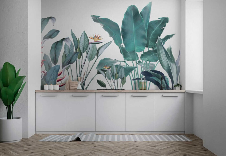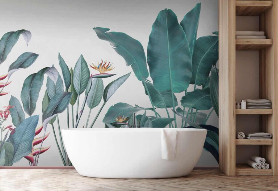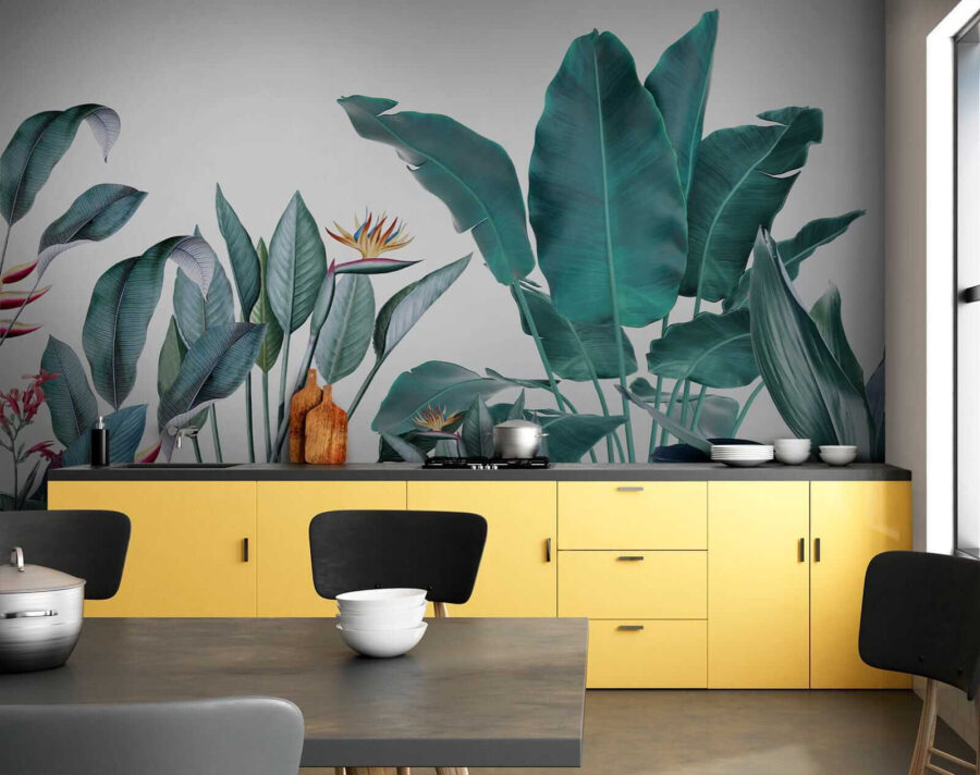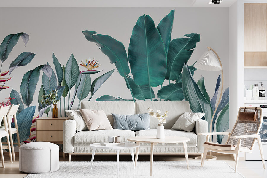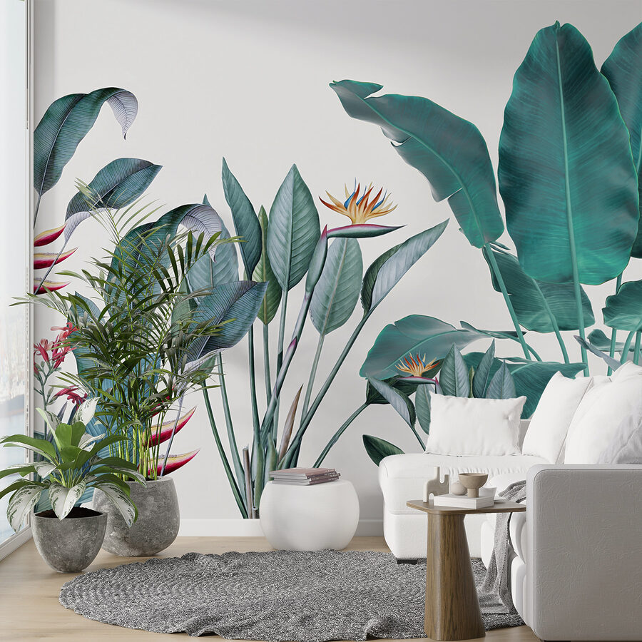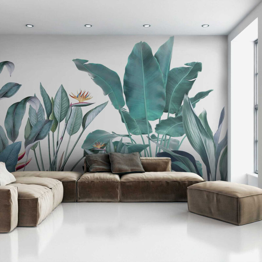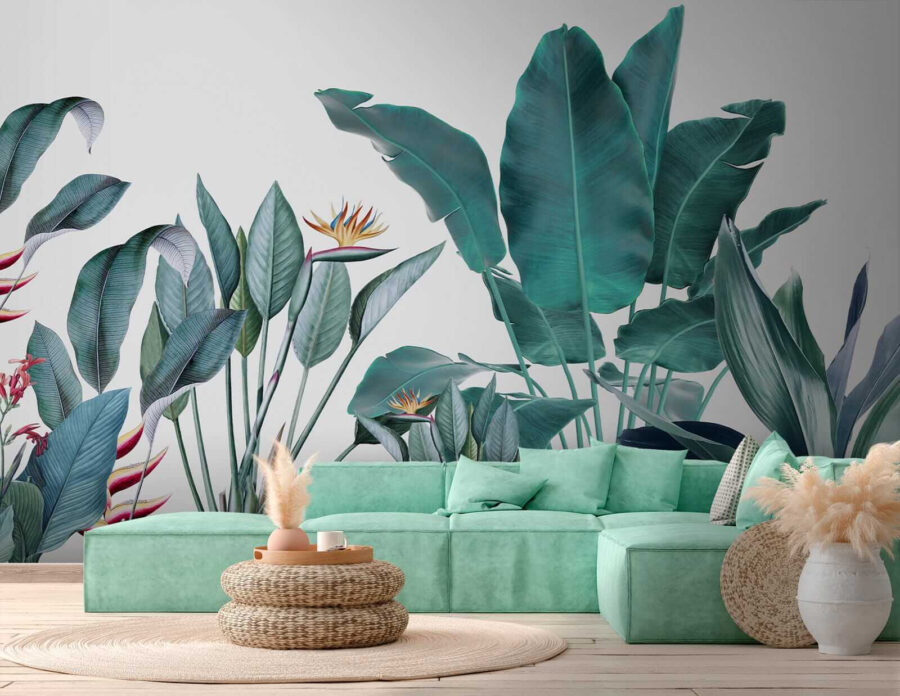 Möchten Sie Ihren Raum umgestalten? Dann sehen Sie sich diese wunderschöne Fototapete “Tropical Foliage with Vivid Colors” an – perfekt, um einen Hauch von Dschungel in Ihr Wohnzimmer zu bringen! Stellen Sie sich vor, Sie wachen jeden Tag mit diesem leuchtenden Grün auf… es ist wie ein kleiner Urlaub für Ihre Augen. Die Mischung aus kräftigen Farben und filigranen Details in den Blättern und Blumen vermittelt das Gefühl, in einem üppigen, tropischen Paradies zu stehen.