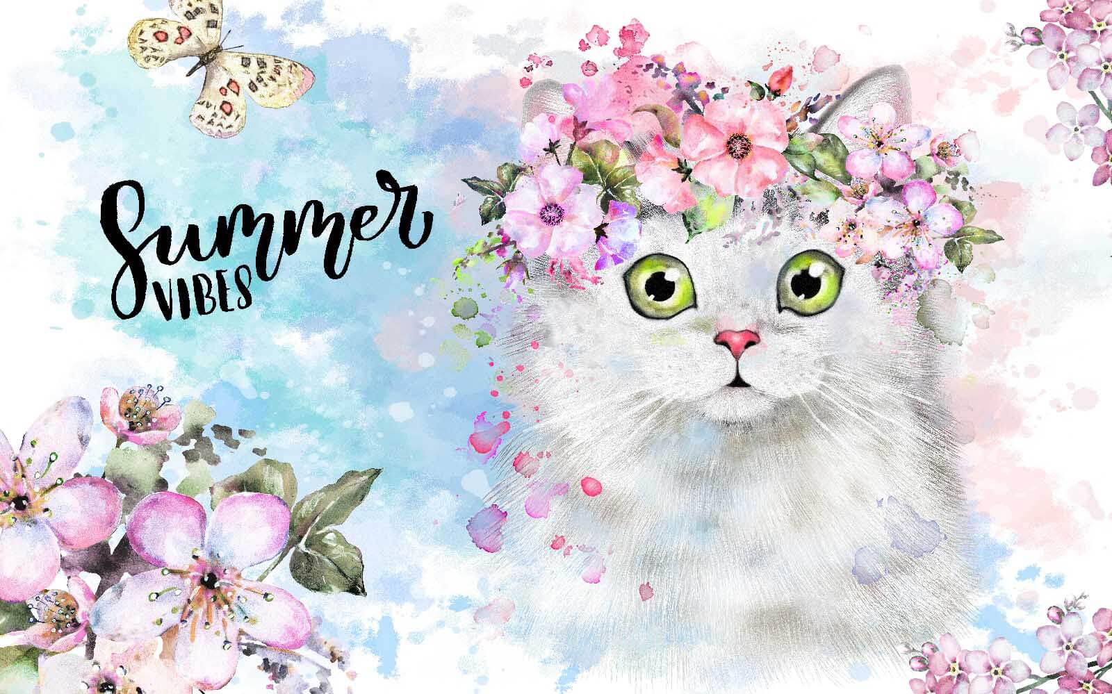 Es ist schwer, nicht über diese strahlenden Augen zu lächeln, die jeden dazu einladen, einen Moment der Freude zu teilen. Ob es nun als Gesprächsanlass dient oder einfach eine Ecke aufhellt, dieses Wandbild bringt Wärme und Laune in Ihr Interieur. Warum also nicht mit dieser geblümten Katze einen Hauch von Sommerstimmung in Ihr Zuhause bringen? Wer könnte da widerstehen?