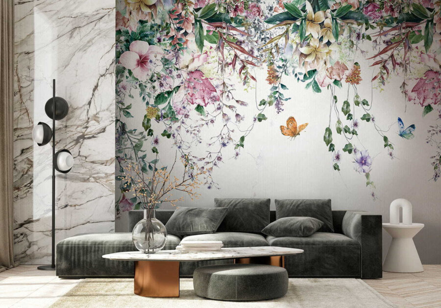 Dieses Wandbild ist nicht nur eine Dekoration, sondern auch eine Stimmung. Stellen Sie sich vor, Sie entspannen sich nach einem langen Tag, umgeben von Blüten und schwebenden Schmetterlingen… friedlich, oder? Es ist, als hätten Sie Ihr persönliches Stückchen vom Paradies. Warum also warten? Lassen Sie Ihre Wände eine Geschichte von Eleganz und lebendigem Charme erzählen!
