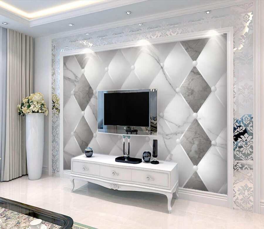 Die Verwandlung eines Raumes kann wie Magie wirken, und dieses Wandbild ist ein spektakuläres Teil dieses Puzzles. Das elegante weiße und graue Rautenmuster schafft eine Atmosphäre, die sowohl beruhigend als auch schick ist und jeden Raum einladend wirken lässt. Stellen Sie sich vor, Sie betreten eine gemütliche Ecke, die sich wie ein stilvoller Rückzugsort anfühlt und nicht wie ein gewöhnlicher Raum. Es hat diese trendige Ausstrahlung, ohne sich zu sehr anzustrengen – so wie ein entspannter Freund, der mühelos cool aussieht.