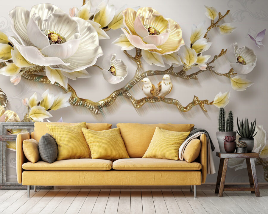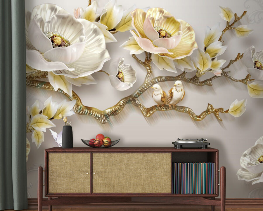 Verwandeln Sie jeden Raum in eine Oase der Ruhe mit dieser atemberaubenden Wandtapete, die zarte Blumen und charmante Vögel zeigt. Stellen Sie sich vor, Sie wachen auf und sehen direkt an Ihren Wänden eine Gartenszene, in der Blumen sanft im Wind wiegen und Vögel liebliche Töne von sich geben. Es ist, als hätten Sie das bestgehütete Geheimnis der Natur – in Ihrem Zuhause! Die sanften Farben strahlen eine friedliche Atmosphäre aus, perfekt zum Tagträumen oder für gemütliche Nachmittage mit Freunden. Außerdem haben Blumen etwas an sich, das einfach alles heller erscheinen lässt, nicht wahr? Diese Tapete ist nicht nur Dekoration, sie schafft eine ganze Stimmung und bringt Wärme und Freude in Ihr Zuhause. Wer würde das nicht wollen?