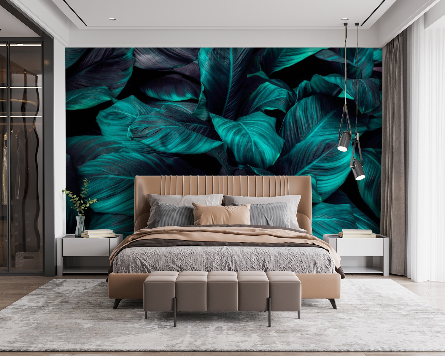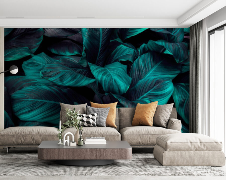 Tauchen Sie ein in eine beruhigende Oase mit der Wandtapete „Lush Leaves in Deep Turquoise Tones”. Stellen Sie sich vor, Sie betreten jedes Mal, wenn Sie den Raum betreten, Ihren eigenen Dschungel-Rückzugsort. Diese leuchtenden Blätter heben sich von jeder Wand ab und sorgen sofort für gute Laune. Es ist wie ein geheimer Garten, aber einfacher zu pflegen – kein Gießen erforderlich! Stellen Sie sich vor, Sie trinken Ihren Morgenkaffee, fühlen sich von Natur umgeben und fragen sich, ob vielleicht plötzlich ein Papagei vorbeikommt, um mit Ihnen zu plaudern. Es ist gewagt, ein bisschen frech und garantiert ein Gesprächsthema. Holen Sie sich diese üppige Atmosphäre nach Hause und lassen Sie Ihre Wände sprechen!
