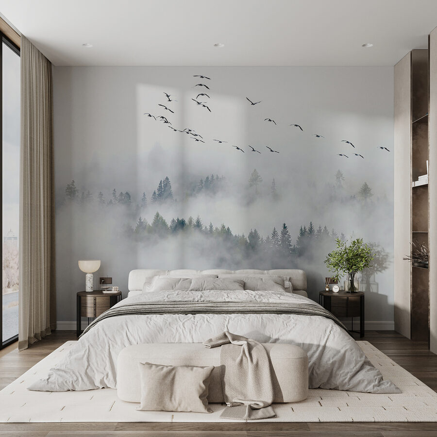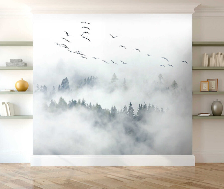 Bringen Sie frischen Wind in jeden Raum mit dieser skurrilen Fototapete mit Vögeln, die durch den Himmel fliegen. Stellen Sie es sich vor – eine ruhige Szene, in der die Vögel zwischen den Wolken zu tanzen scheinen und so eine friedliche Atmosphäre schaffen, die perfekt für Schlafzimmer oder gemütliche Leseecken ist. Es ist, als würde man in die frische Morgenluft hinausgehen, ohne das Haus zu verlassen. Stellen Sie sich vor, wie Sie an Ihrem Kaffee nippen und sich in dieser verträumten Umgebung sonnen. Die sanften Farbtöne lassen sich leicht mit Ihrer Einrichtung kombinieren, während die sanfte Bildsprache zu Ruhe und Inspiration einlädt. Spüren Sie den Auftrieb? Es ist nicht nur ein Wandbild, es ist ein kleines Stückchen Frieden.