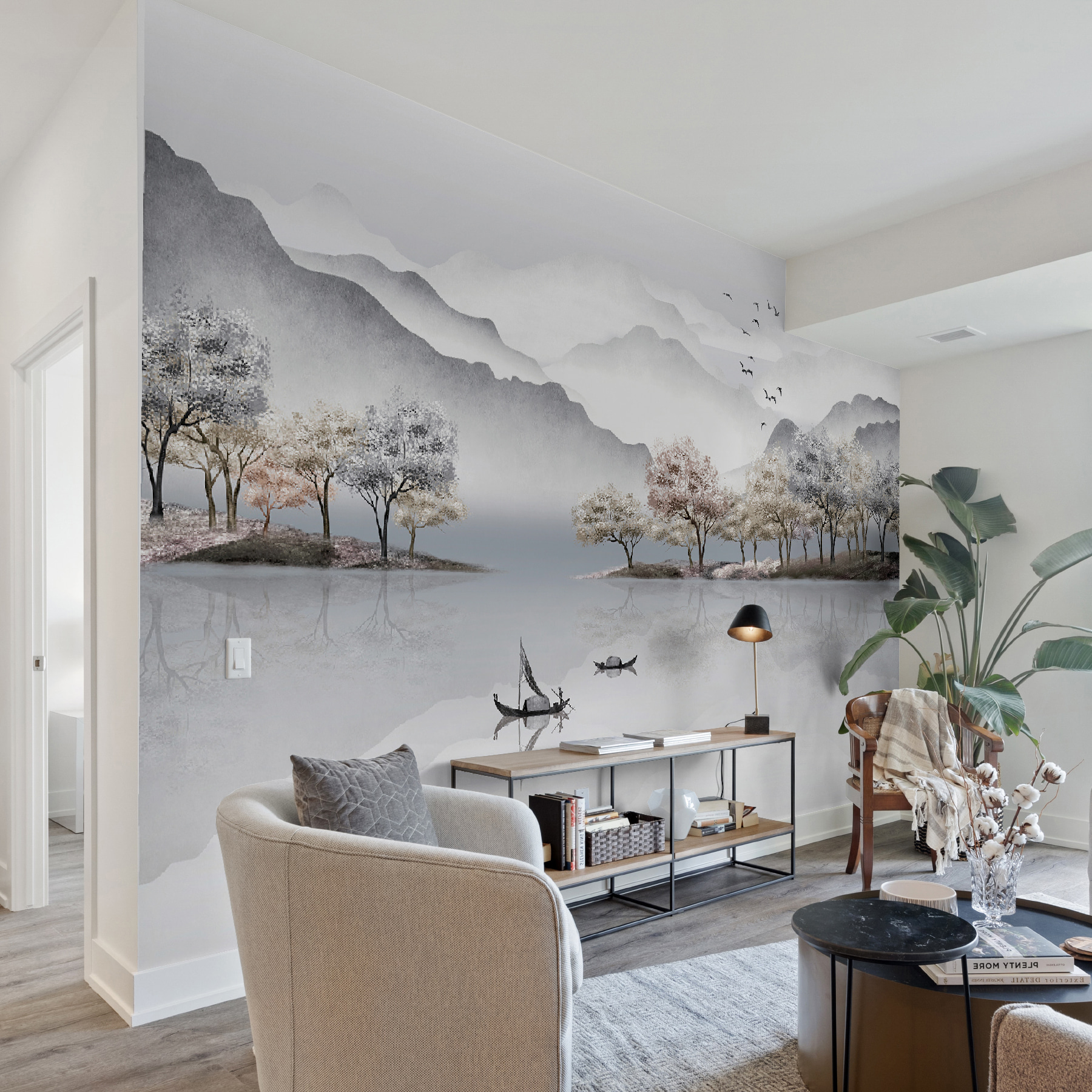 Stellen Sie sich vor, Sie betreten einen Raum und spüren sofort die Gelassenheit eines nebligen Morgens in den Bergen. Das Wandbild “Vögel fliegen über Bäume” ist wie ein sanfter Seufzer für Ihre Wände. Mit seinen sanften Farbtönen und den anmutigen Vögeln, die über die Baumwipfel gleiten, ist es perfekt geeignet, um einen Zufluchtsort in Ihrem Zuhause zu schaffen. Dies ist nicht nur ein Wandbild – es ist eine Stimmung. Die Bäume flüstern Geschichten der Ruhe, während die Berge hoch und zeitlos im Hintergrund stehen. Vielleicht ertappt man sich dabei, wie man von ruhigen Wanderungen oder luftigen Nachmittagen am See träumt… Es ist eine kleine tägliche Flucht, direkt an Ihrer Wand. Ob im Wohnzimmer, im Schlafzimmer oder sogar im Büro – dieses Wandbild bringt ein Stück der Ruhe der Natur nach drinnen. Es ist nicht umsonst in den Kategorien “Beliebt” und “Berge” angesiedelt – die Menschen können von diesem beruhigenden, geerdeten Gefühl nicht genug bekommen. Jetzt können Ihre Wände eine Geschichte erzählen, und was für eine schöne Geschichte!