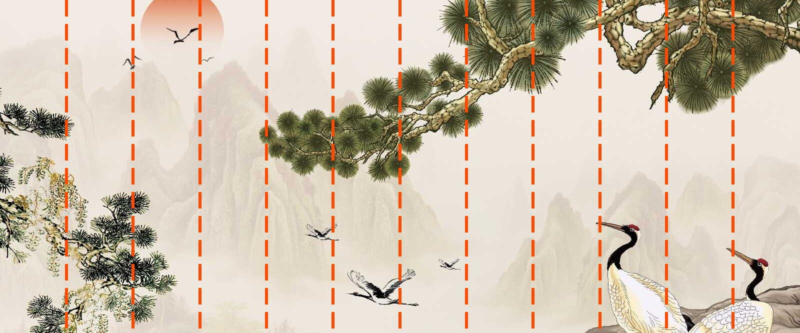 Ihre Tapete wird nach den von Ihnen während des Bestellvorgangs angegebenen Maßen angefertigt. Die Leinwand wird in praktische Abschnitte von jeweils bis zu 50 cm Breite unterteilt.