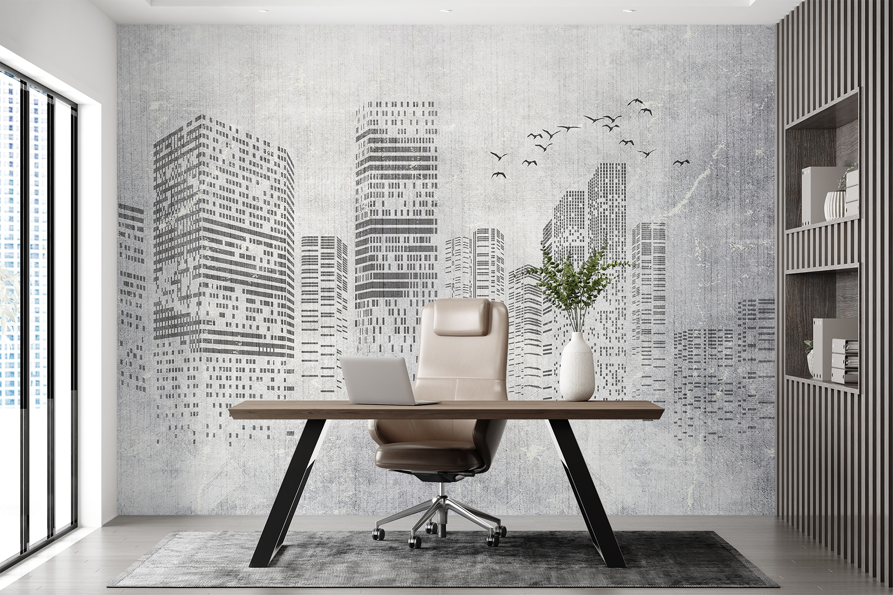 Perfekt für alle, die eine moderne, minimalistische Ästhetik lieben, aber dennoch einen gewissen Pfiff haben möchten. Außerdem bringen die weichen, dunstigen Wolken einen Hauch von Entspannung in die sonst so energiegeladene Stadtlandschaft. Man hat das Gefühl, an einem nebligen Morgen aus einem Hochhaus zu schauen und zu sehen, wie die Welt zum Leben erwacht – ziemlich poetisch, oder?