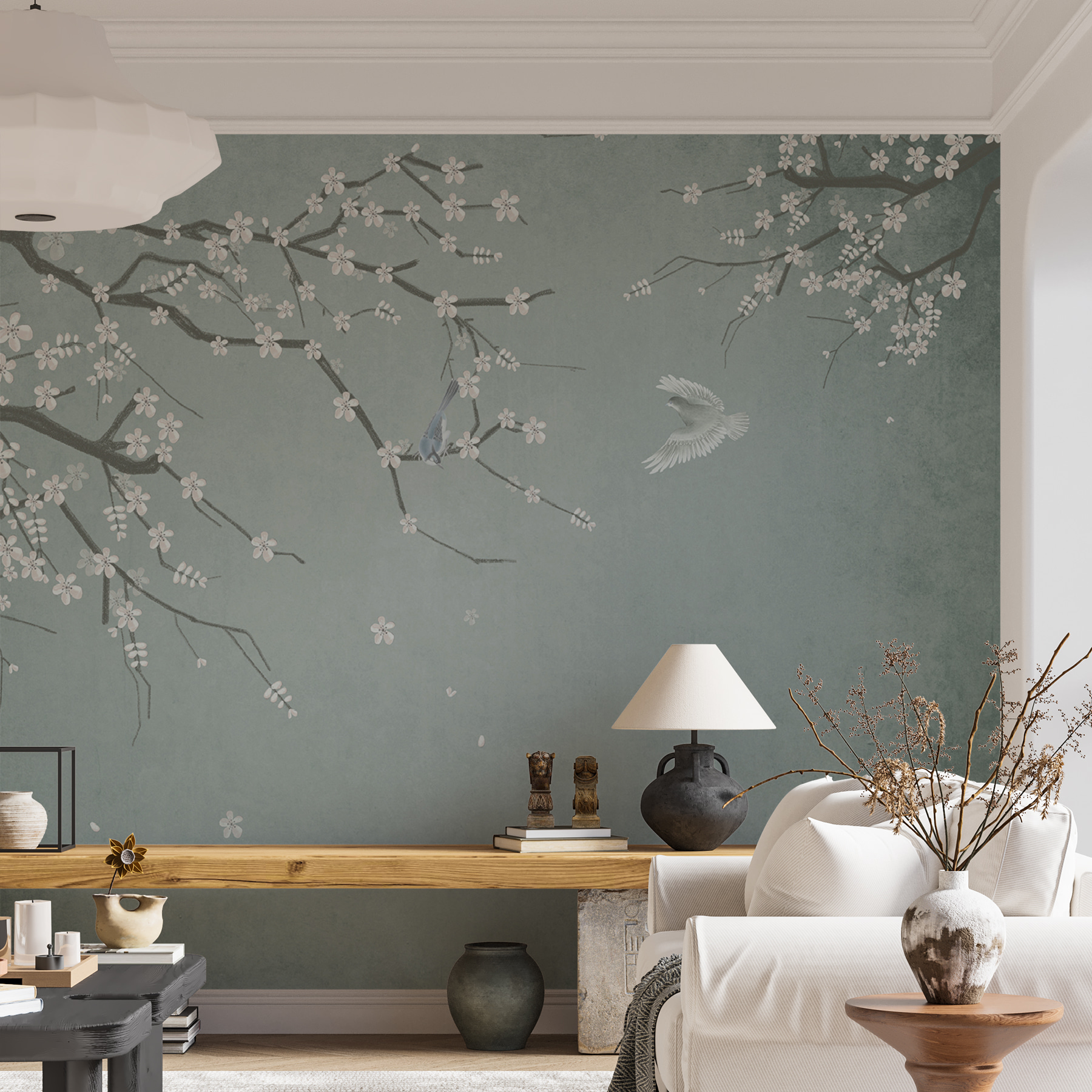 Stellen Sie sich vor, Sie betreten einen Raum, in dem Frieden und Kunst aufeinandertreffen – “Birds and Blossoms in Serene Harmony” ist genau das! Stellen Sie sich zarte Kirschblüten und Vögel vor, die sich an Ihrer Wand vermischen und ein kleines Stückchen Paradies schaffen. Es ist, als würde man das sanfte Geflüster des Frühlings ins Haus holen.