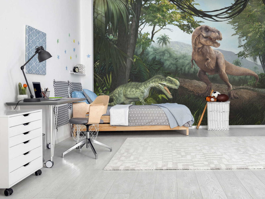 Ist Ihr Kind besessen von Dinosauriern? Oder vielleicht lieben Sie es einfach, langweilige Wände in atemberaubende Unterhaltungen zu verwandeln? Mit dieser lebendigen, naturgetreuen Fototapete können Sie in die Welt des Jura eintauchen – sie ist wie Ihre eigene Zeitmaschine! Stellen Sie sich vor, Sie wachen jeden Tag mit einem T-Rex auf (ohne den gruseligen Teil, natürlich). Perfekt für Kinderzimmer, Spielbereiche oder sogar das schrullige Heimbüro – ein sofortiger Stimmungsaufheller. Der 3D-Effekt sorgt für ein erstaunliches Gefühl der Tiefe, fast so, als könnten Sie direkt in den üppigen Dschungel eintauchen. Sind Sie bereit, etwas prähistorische Magie zu entfesseln? Rawr-some!