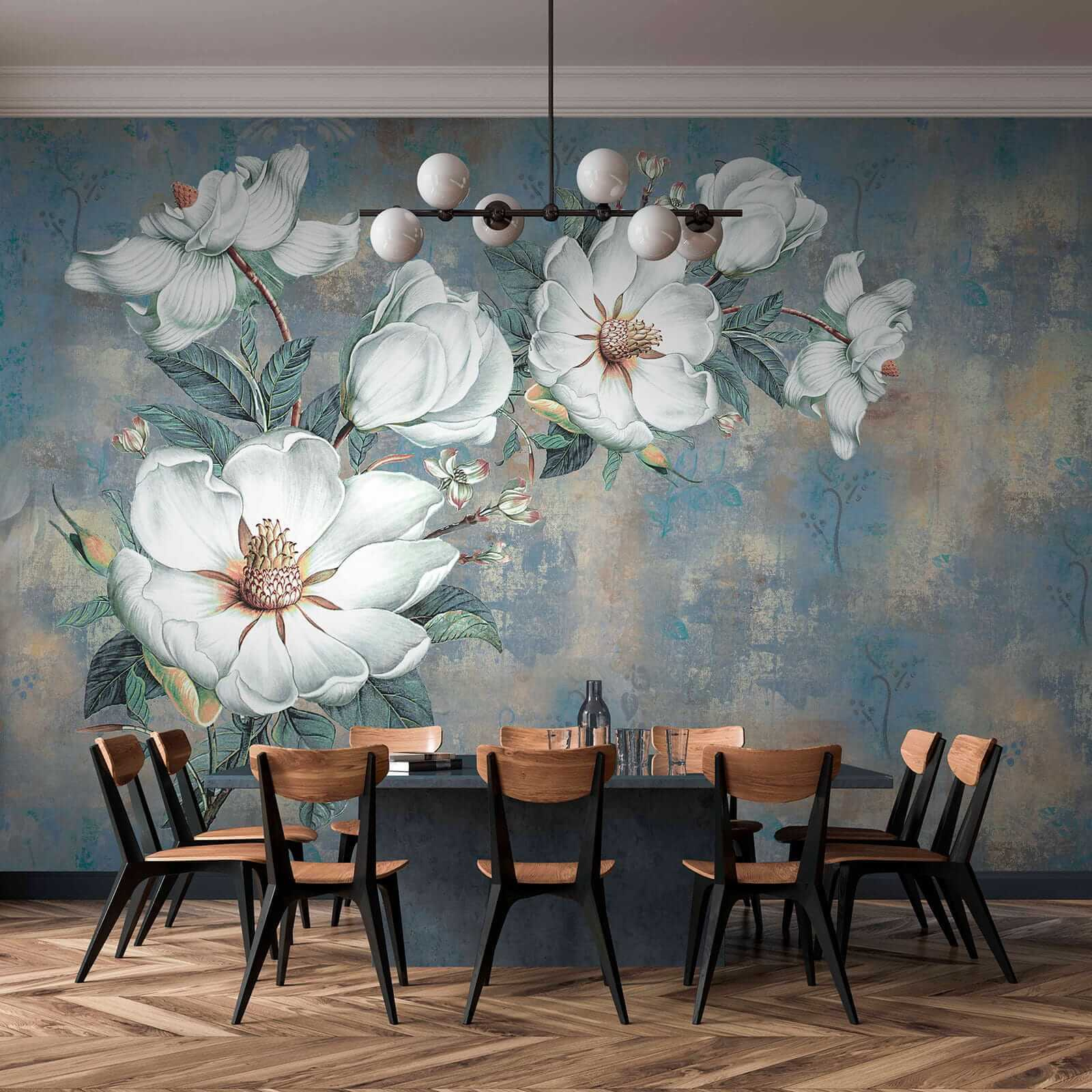 2 Rezensionen für Fototapeten Weiße Blumen auf blauem, strukturiertem Hintergrund