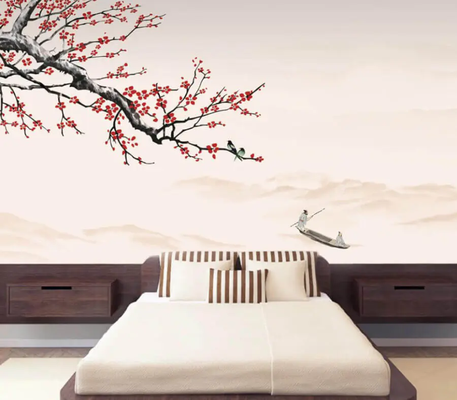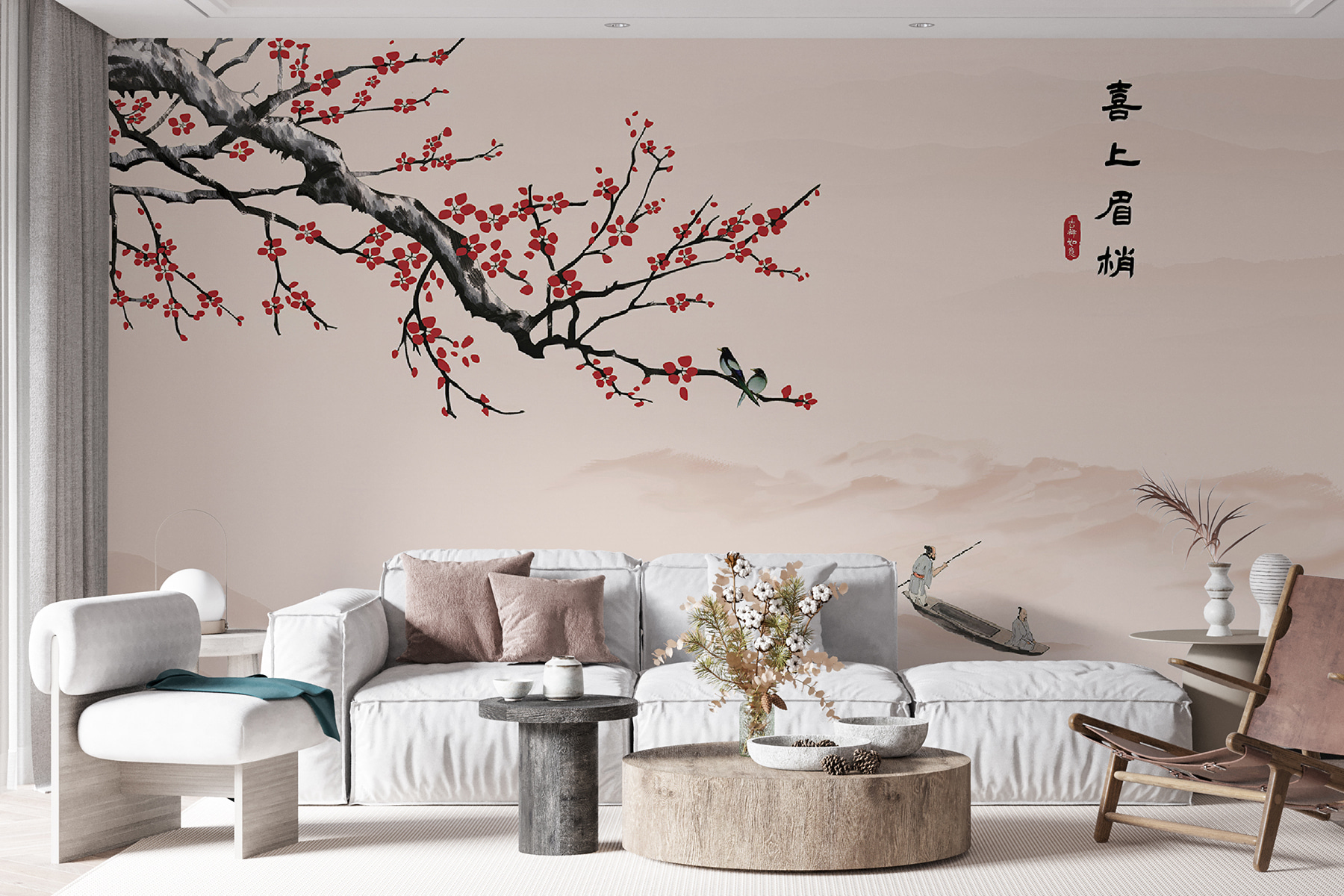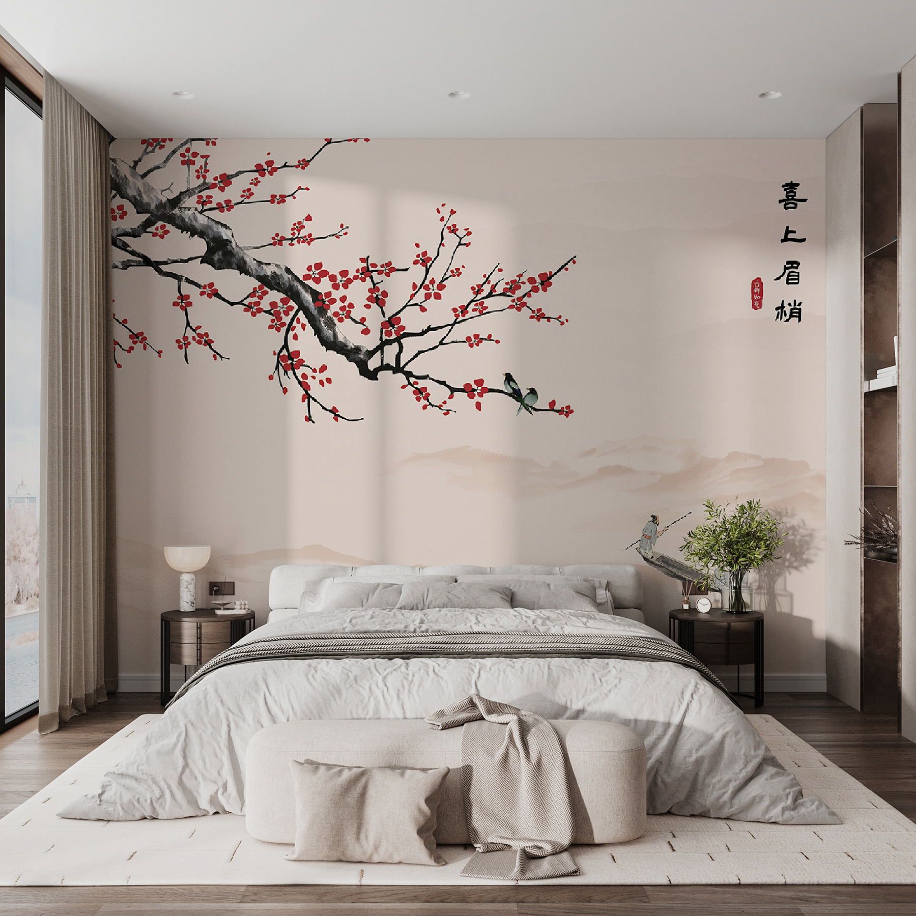 Verschönern Sie Ihren Raum mit dieser Fototapete “Baumzweig mit roten Blumen”! Stellen Sie sich vor, Sie wachen mit diesem Anblick auf – elegante Zweige, die sich über Ihre Wand erstrecken und mit leuchtend roten Blüten übersät sind. Es ist, als hätte ein Hauch von Natur Ihr Zimmer geküsst, während Sie schliefen. Perfekt für Wohnzimmer, Schlafzimmer oder sogar eine gemütliche Leseecke.
