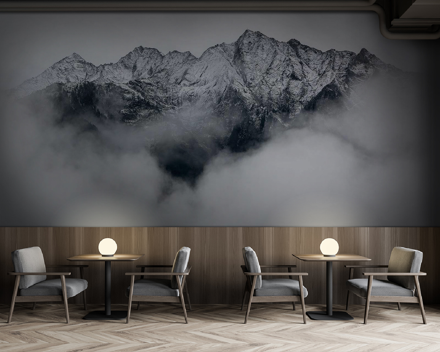 Verwandeln Sie jeden Raum in ein verschneites Paradies mit dieser beeindruckenden Fototapete. Diese majestätischen, schneebedeckten Berge, die durch die wirbelnden Wolken schauen, fühlen sich an wie ein Hauch von frischer Luft, oder? Stellen Sie sich vor, Sie schlürfen Ihren Morgenkaffee und genießen dabei diese kühle, ruhige Aussicht. Es ist, als würde man sich ein Stück Abenteuer nach Hause holen, nur ohne Frostbeulen. Diese Fototapete eignet sich perfekt als Akzent an der Wand oder als plakatives Statement und lädt zu gemütlichen Gesprächen und Tagträumen von weit entfernten Orten ein. Es ist die Schönheit der Natur ohne die Wanderschuhe! Warum also nicht das Fernweh durch die Berge in Ihrem Raum wecken?