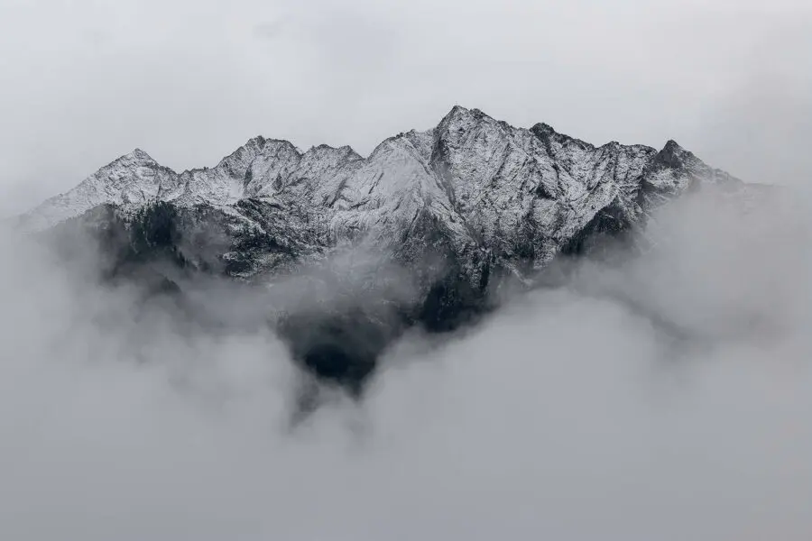 Verwandeln Sie jeden Raum in ein verschneites Paradies mit dieser beeindruckenden Fototapete. Diese majestätischen, schneebedeckten Berge, die durch die wirbelnden Wolken schauen, fühlen sich an wie ein Hauch von frischer Luft, oder? Stellen Sie sich vor, Sie schlürfen Ihren Morgenkaffee und genießen dabei diese kühle, ruhige Aussicht. Es ist, als würde man sich ein Stück Abenteuer nach Hause holen, nur ohne Frostbeulen. Diese Fototapete eignet sich perfekt als Akzent an der Wand oder als plakatives Statement und lädt zu gemütlichen Gesprächen und Tagträumen von weit entfernten Orten ein. Es ist die Schönheit der Natur ohne die Wanderschuhe! Warum also nicht das Fernweh durch die Berge in Ihrem Raum wecken?