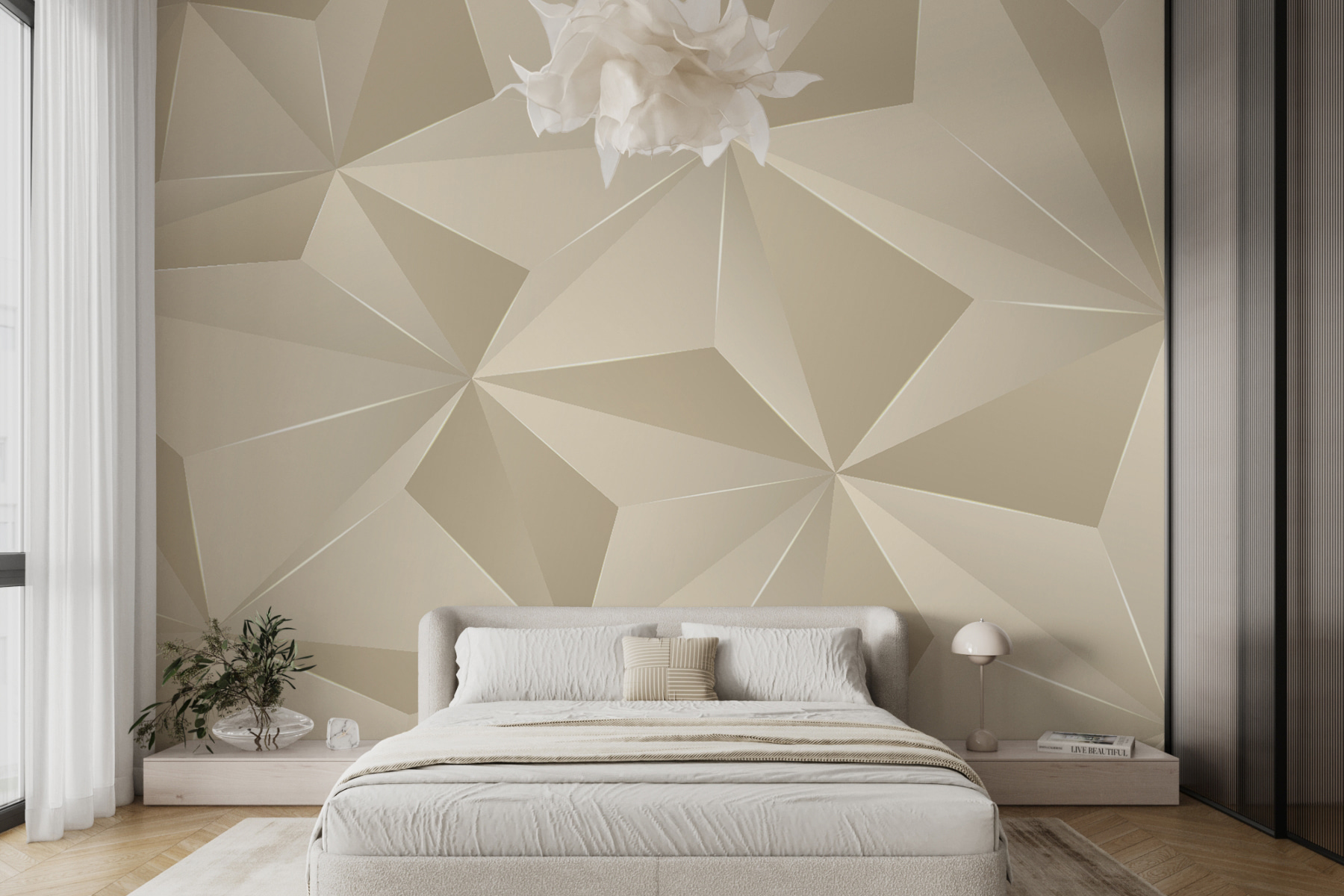Mit diesem Wandbild mit auffälligem geometrischem Muster ist es ganz einfach, einen Raum zu gestalten. Jede Facette vermittelt die Illusion von Tiefe und lädt Ihre Augen dazu ein, im Raum herumzutanzen. Stellen Sie sich vor, wie Sie es sich in Ihrem Wohnzimmer gemütlich machen und an einem warmen Getränk nippen, während diese Fototapete ein kühnes Statement abgibt. Es ist, als hätten Sie Kunst an Ihrer Wand, ohne die lästige Pflege echter Gemälde. Außerdem verbreiten die dezenten Farben eine ruhige Stimmung – perfekt, um sich nach einem langen Tag zu entspannen. Ihre Freunde werden Sie vielleicht sogar fragen, woher Sie diesen einzigartigen Look haben. Diese Art von Hintergrund regt zu Gesprächen an, passt zu Ihrem Stil und fühlt sich einfach richtig an.