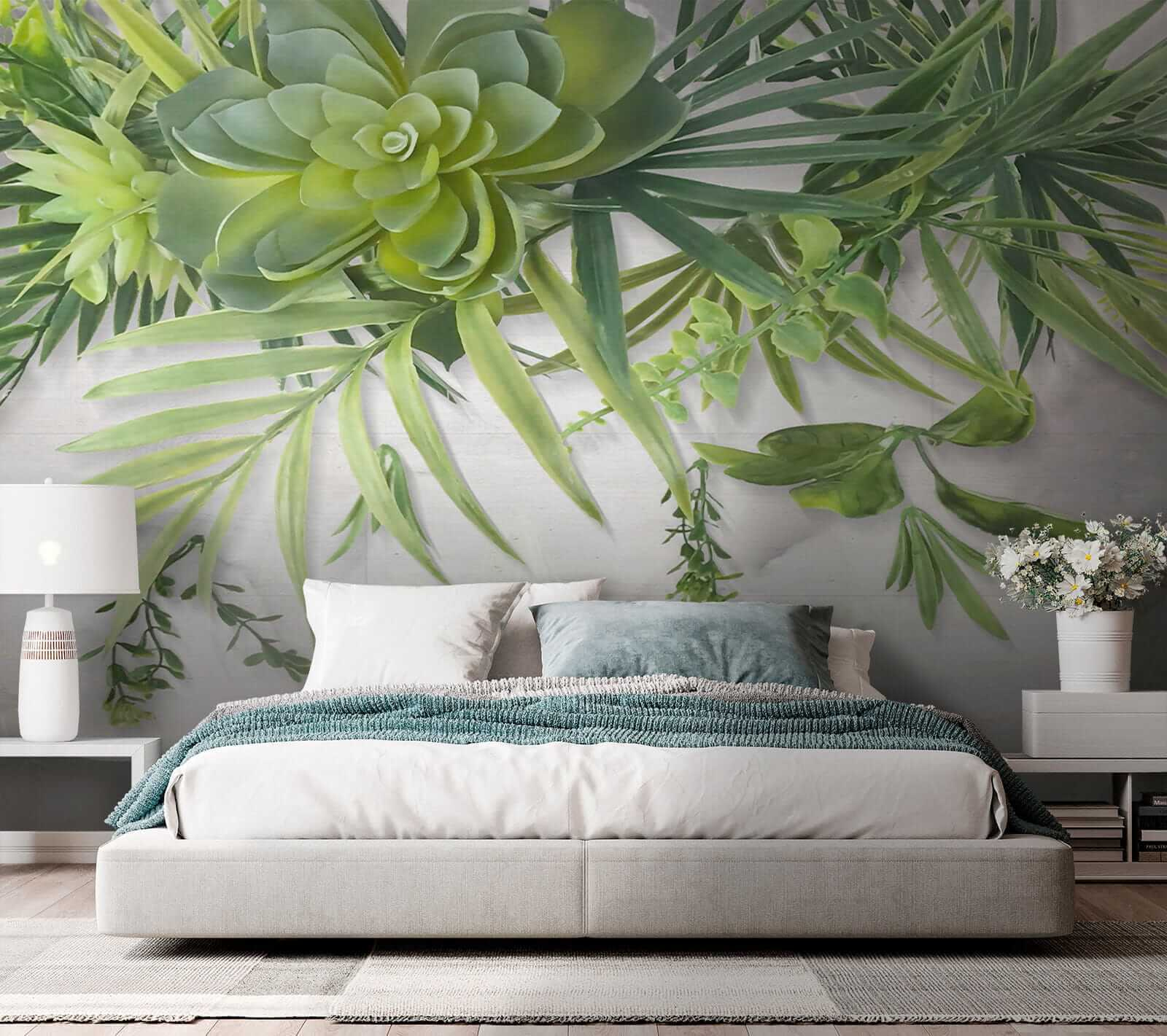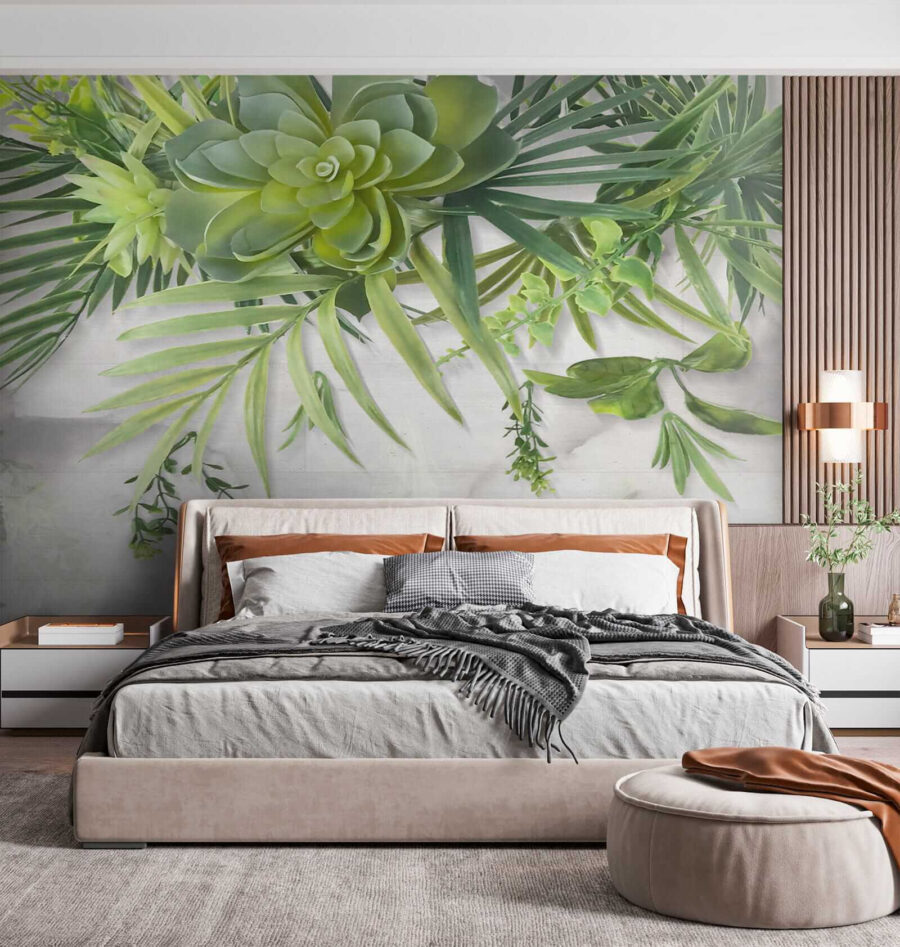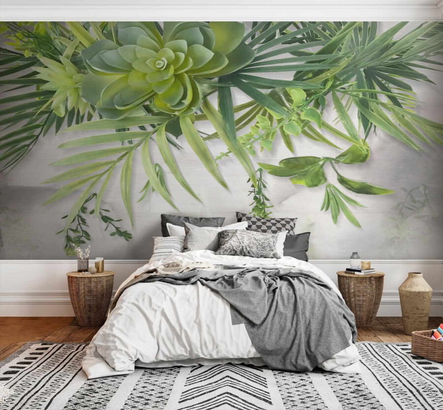 Stellen Sie sich vor, Sie schlürfen Ihren Morgenkaffee unter einem grünen Blätterdach – ohne Ihr Wohnzimmer zu verlassen! Diese “Fototapeten Green succulents and leafy branches overhead” verwandeln jeden Raum in einen üppigen, ruhigen Rückzugsort. Die leuchtenden Sukkulenten und die zarten grünen Zweige, die über der Wand baumeln, wirken fast dreidimensional. Es ist perfekt, um ein bisschen Natur einzuatmen, besonders wenn Sie einen schwarzen Daumen haben (kein Gießen erforderlich!). Ganz gleich, ob du dir einen urbanen Dschungel in der Stadt erträumst oder eine erfrischende Note in deine naturverbundene Ecke bringen willst – dieses Wandbild ist genau das Richtige für dich. Es ist, als hätte man ein Stück botanischen Garten im Haus – nur ohne die lästigen Käfer! Bringen Sie sofortige Entspannung in jeden Raum… und vielleicht auch ein bisschen Neid bei Ihren Freunden.