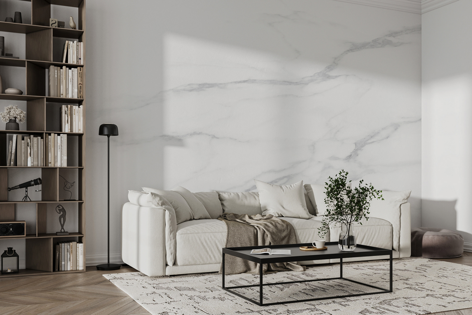 Verwandeln Sie jede gewöhnliche Wand in ein atemberaubendes Meisterwerk mit diesem Wandbild mit weißer Marmorstruktur und eleganten Adern. Stellen Sie sich vor, Sie betreten einen Raum und spüren sofort einen Hauch von Raffinesse, als würden Sie eine schicke Galerie betreten. Diese Fototapete steht nicht einfach nur da, sie belebt den Raum und schafft eine ruhige Atmosphäre, die perfekt ist, um sich nach einem langen Tag zu entspannen. Außerdem ist es so einfach anzubringen. Einfach abziehen und aufkleben, und schon strahlen Ihre Wände Eleganz aus. Ihre Freunde werden Sie bestimmt fragen, woher Sie diese Schönheit haben, und Sie werden lächeln und Ihr Geheimnis für sich behalten. Perfekt für gemütliche Ecken oder auffällige Wände – lassen Sie Ihrer Fantasie freien Lauf!