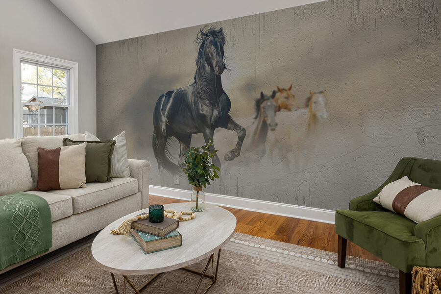 Verwandeln Sie Ihren Raum mit dieser beeindruckenden Fototapete, die ein majestätisches schwarzes Pferd mit wehender Mähne zeigt, das soeben die besten Nachrichten aller Zeiten erfahren hat. Stellen Sie sich vor, Sie betreten einen Raum, in dem diese Schönheit stolz dasteht und Sie geradezu einlädt, sie auf ein wildes Abenteuer zu begleiten. Das ist nicht nur Dekoration, das ist ein Erlebnis. Die warmen, erdigen Töne schaffen eine gemütliche und doch lebendige Atmosphäre, die sich perfekt für ein Wohnzimmer oder ein Büro eignet. Freunde werden sich wundern und vielleicht sogar fragen, ob das Pferd vorbeikommt, um Hallo zu sagen. Perfekt für Tierliebhaber oder alle, die einen Hauch von ungezähmtem Geist in ihrem Heim genießen. Pferde vermitteln ein Gefühl von Freiheit, nicht wahr? Warum lassen Sie sich also nicht täglich von diesem Tier inspirieren? Es eignet sich perfekt, um dem Raum Charakter und Wärme zu verleihen und wird mit Sicherheit zum Gesprächsthema werden.