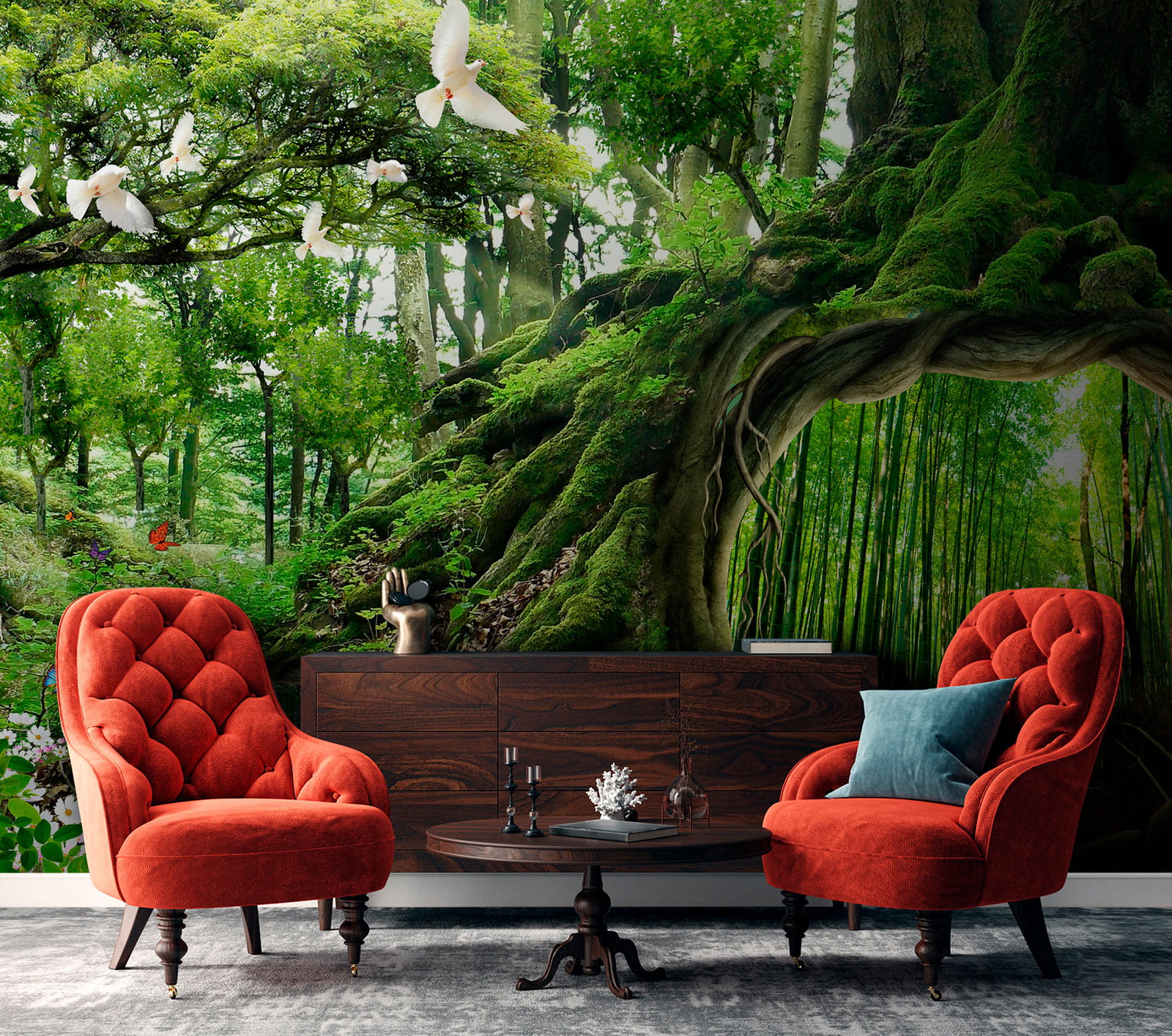 Transform your space into a cozy woodland escape with the “Wall Murals Tree with a Hole in the Middle of It.” Imagine stepping into your room and feeling like you’ve just wandered into a magical forest. This mural captures the essence of nature, with vibrant greens and whimsical little details, like butterflies and gentle doves. The tree, with its inviting hollow, plays tricks on the mind—it’s like a doorway to another enchanting world! Perfect for daydreamers or anyone needing a bit of nature therapy. Think of it as a daily reminder to breathe and unwind, bringing the outside in while still enjoying the comforts of home. It’s wallpaper that whispers stories of adventure and tranquility, making every glance a mini escape. How could anyone resist?