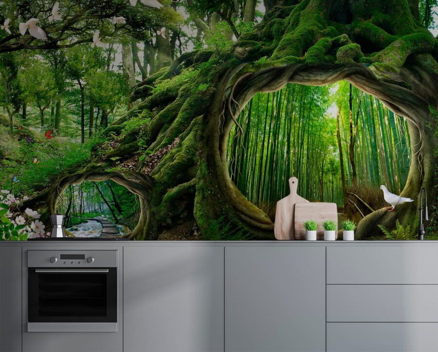 Verwandeln Sie Ihren Raum in einen gemütlichen Rückzugsort im Wald mit der „Wandtapete Baum mit einem Loch in der Mitte“. Stellen Sie sich vor, Sie betreten Ihr Zimmer und fühlen sich, als wären Sie gerade in einen Zauberwald gewandert. Diese Wandtapete fängt die Essenz der Natur ein, mit leuchtendem Grün und verspielten kleinen Details wie Schmetterlingen und sanften Tauben. Der Baum mit seiner einladenden Höhle spielt dem Verstand einen Streich – er ist wie ein Tor zu einer anderen zauberhaften Welt! Perfekt für Tagträumer oder alle, die ein bisschen Naturtherapie brauchen. Betrachten Sie es als tägliche Erinnerung daran, durchzuatmen und sich zu entspannen, die Außenwelt hereinzulassen und gleichzeitig den Komfort Ihres Zuhauses zu genießen. Diese Tapete flüstert Geschichten von Abenteuer und Ruhe und macht jeden Blick zu einer kleinen Flucht. Wie könnte man da widerstehen?