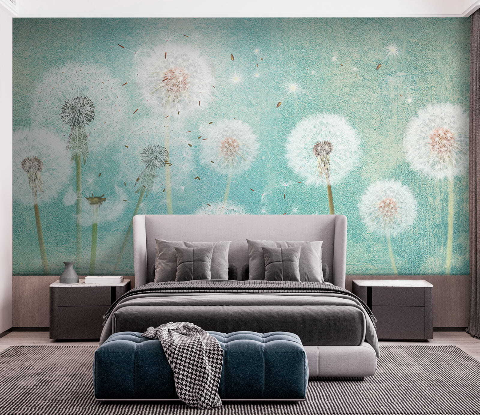 Verwandeln Sie jeden Raum mit der bezaubernden Fototapete “Dandelions Dancing in the Soft Breeze” in ein skurriles Wunderland. Stellen Sie sich diese zarten Löwenzahnsamen vor, die sanft durch die Luft schweben und ein Gefühl von Ruhe und Nostalgie hervorrufen. Diese Fototapete eignet sich perfekt für ein Kinderzimmer oder eine gemütliche Ecke und bringt einen Hauch von Natur ins Haus, so dass man sich das ganze Jahr über wie im Frühling fühlt. Außerdem ist es, als hätte man ein kleines Stückchen Magie an der Wand. Ein wahrer Gesprächsanlass! Sie werden jedes Mal lächeln, wenn Sie daran vorbeigehen. Wer würde nicht gerne in einen sanften, luftigen Tag entfliehen?