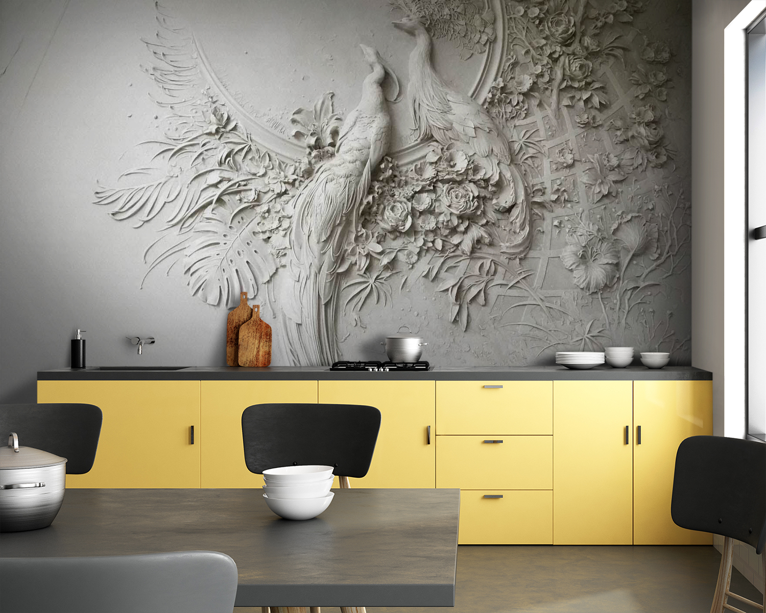Stellen Sie sich vor, Sie betreten einen Raum, in dem es sich anfühlt, als würden Sie in einen ruhigen Garten eintreten, in dem Pfaue und Blüten elegant miteinander tanzen. Diese Fototapete mit ihrem anmutigen Kunstwerk verwandelt jeden Raum in einen ruhigen Rückzugsort. Das komplizierte Design hat eine beruhigende Ausstrahlung, die beinahe Geschichten aus der Natur flüstert. Stellen Sie sich vor, Sie machen es sich mit einem guten Buch gemütlich, umgeben von dieser bezaubernden Szene – ein wahres Glücksgefühl, oder? Freunde könnten sich in den Details verlieren, was zu reizvollen Gesprächen über Kunst und Natur führt. Perfekt für alle, die Schönheit im Alltag zu schätzen wissen!