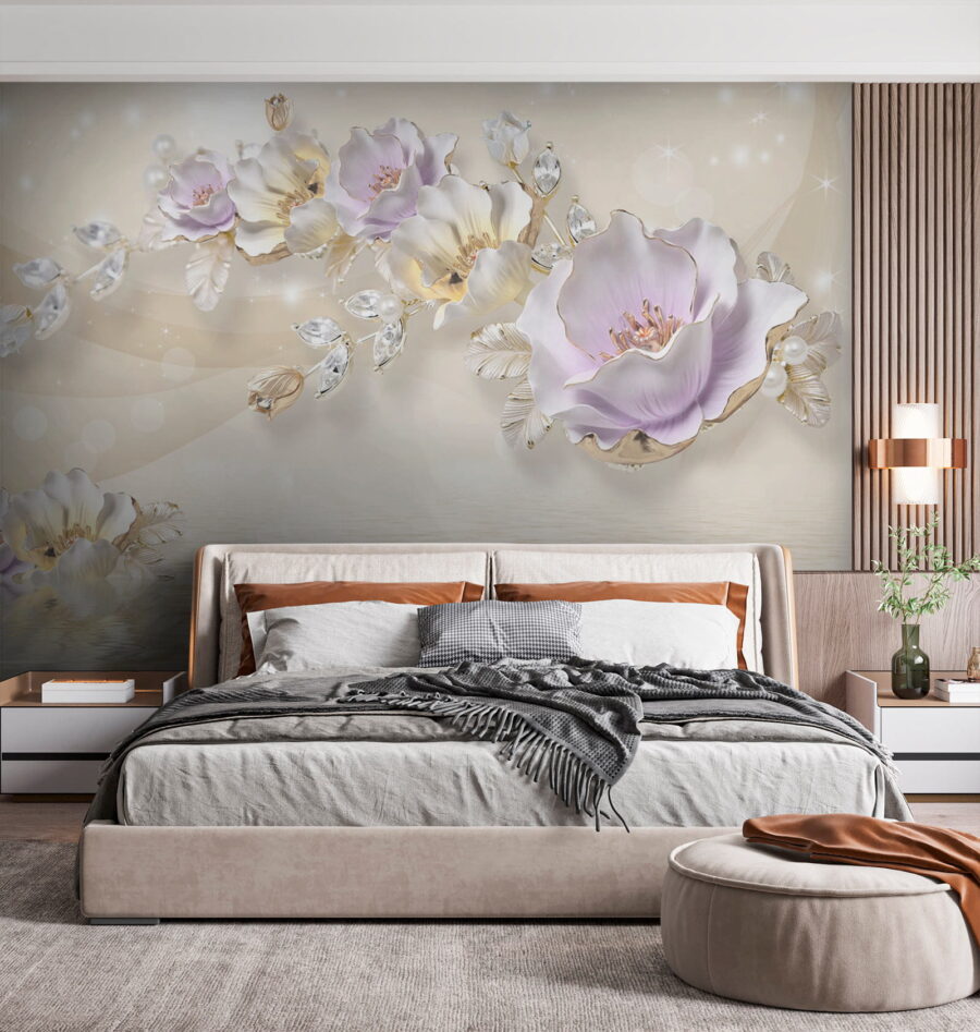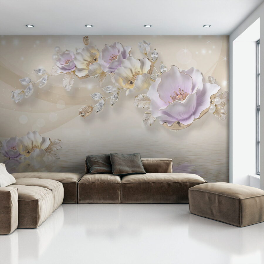 Verwandeln Sie Ihren Raum mit dieser atemberaubenden Fototapete, die zarte Blumen und bezaubernde Akzente zeigt. Stellen Sie sich vor, Sie betreten einen Raum, in dem Sie von der Schönheit der Blüten umgeben sind, die eine heitere Flucht ermöglichen. Die sanften Farben strahlen Wärme aus und sind perfekt, um an einem trüben Tag Freude zu verbreiten. Es ist, als hätte man einen Garten direkt an der Wand, ohne dass man einen grünen Daumen braucht. Und die funkelnden Akzente verleihen dem Ganzen einen Hauch von Charme, der es wie einen geheimen Schatz erscheinen lässt. Es eignet sich perfekt für eine gemütliche Leseecke oder ein ruhiges Schlafzimmer und zaubert jedem ein Lächeln ins Gesicht. Ein bisschen Natur, viel Stil – wer könnte da widerstehen?