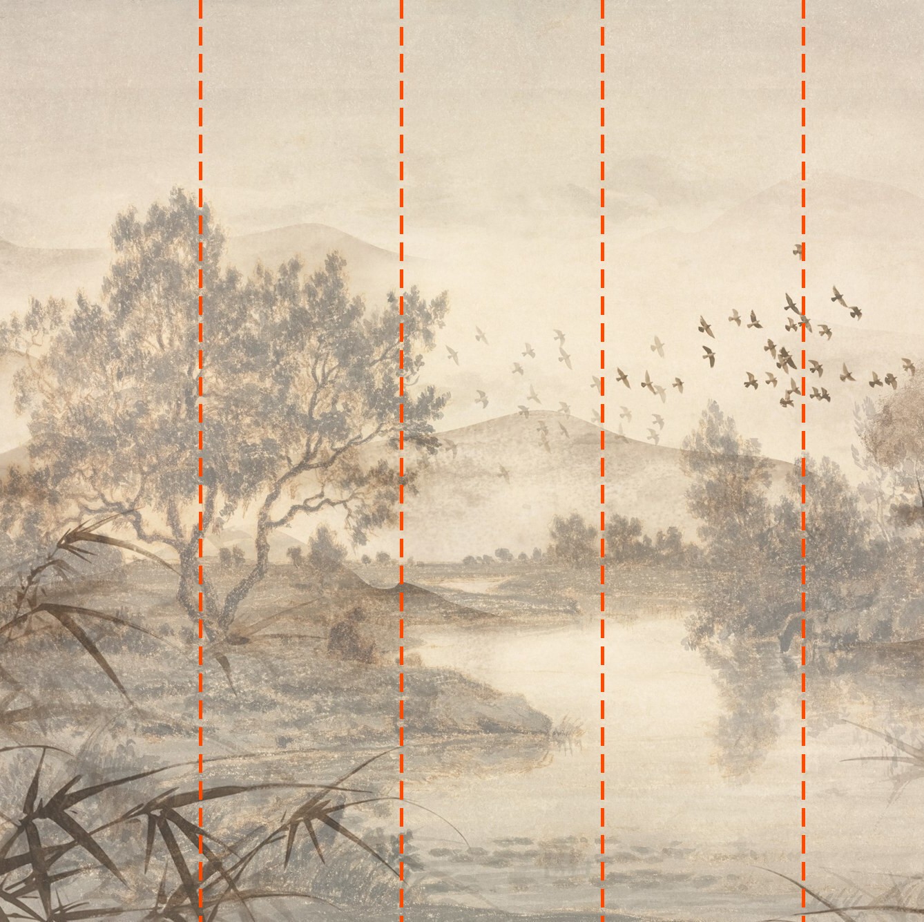 Ihre Tapete wird nach den von Ihnen während des Bestellvorgangs angegebenen Maßen angefertigt. Die Leinwand wird in praktische Abschnitte von jeweils bis zu 50 cm Breite unterteilt.