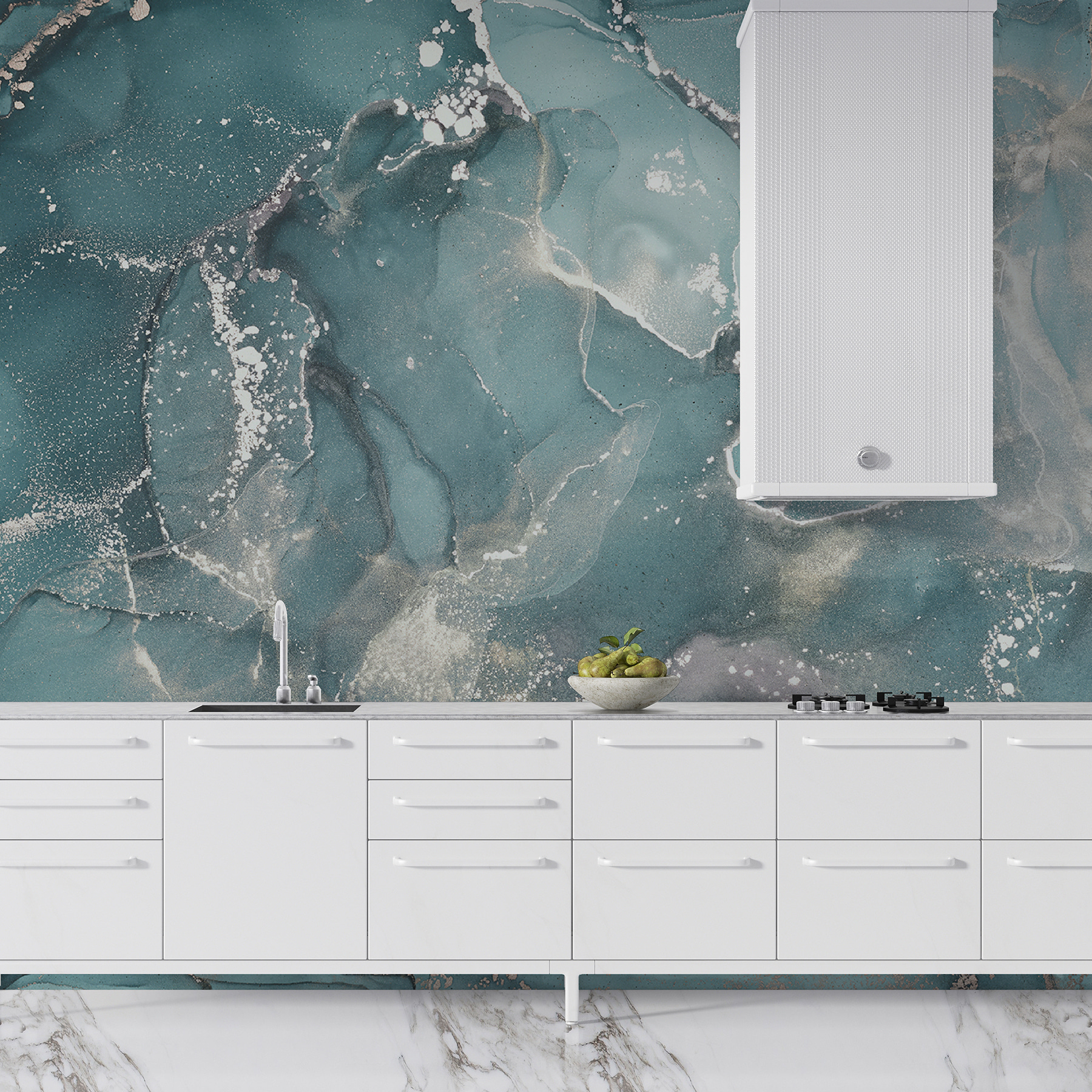 Stellen Sie sich vor: ein fauler Sonntagmorgen, ein Kaffee in der Hand, ein Raum, der sich wie eine Oase anfühlt… und das alles dank dieser atemberaubenden Wandmalerei. “Abstrakte Teal and White Fluid Art” ist nicht nur eine Wandmalerei, sondern ein ganzes Lebensgefühl. Die Wirbel von Teal, die Schattierungen von Weiß und die Andeutungen von marmorierten Texturen schaffen eine beruhigende, fast traumhafte Atmosphäre, die jeden Raum verwandelt. Jedes Mal, wenn man den Raum betritt, ist es, als würde man ein Kunstwerk betreten. Dieses Wandbild ist perfekt für alle, die ihrer Einrichtung einen Hauch von Einzigartigkeit verleihen möchten, denn es setzt ein mutiges Statement, ohne zu schreien. Es ist raffiniert und doch verspielt – ideal für alle, die einen Hauch von Eleganz mit einem Hauch von Laune verbinden möchten. Ob im Wohnzimmer, im Schlafzimmer oder sogar in einem Kreativstudio, diese Fototapete verwandelt gewöhnliche Wände in außergewöhnliche Leinwände.