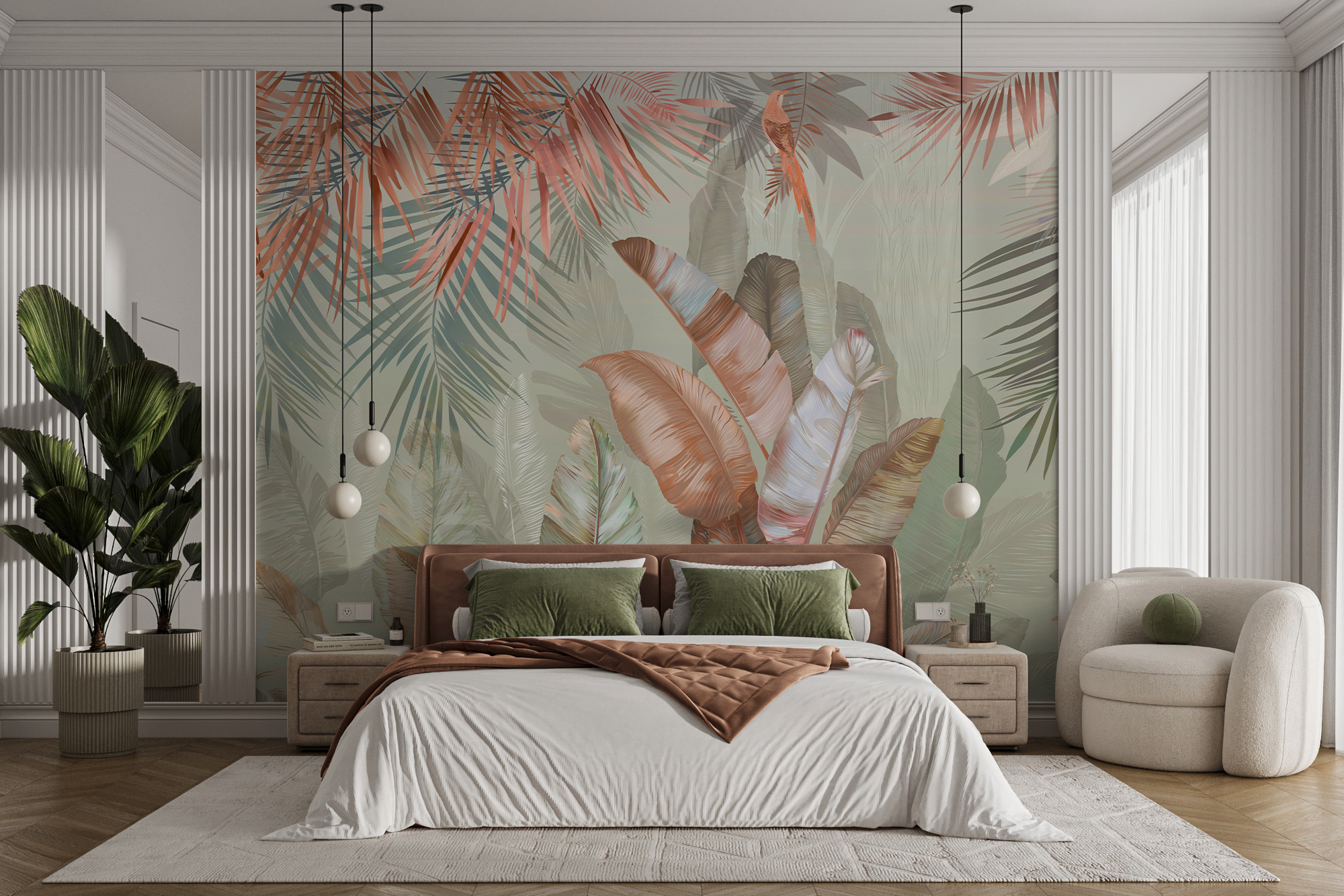 Verwandeln Sie Ihren Raum mit diesem entzückenden Wandbild, das tropische Blätter in sanften Pastelltönen zeigt. Stellen Sie sich vor: Sie wachen in einem sonnenbeschienenen Raum auf, in dem die Natur durch die Kunst flüstert. Die sanften Grün- und Blush-Töne sorgen für eine ruhige Atmosphäre, die perfekt für eine gemütliche Ecke oder ein helles Wohnzimmer ist. Stellen Sie sich vor, Sie schlürfen an einem Regentag einen Kaffee und fühlen sich wie in einem heiteren Dschungel. Das ist wie ein Mini-Urlaub direkt an Ihrer Wand. Außerdem ist es ein toller Gesprächsanlass – die Gäste werden neugierig sein, was hinter dieser beruhigenden Schönheit steckt.