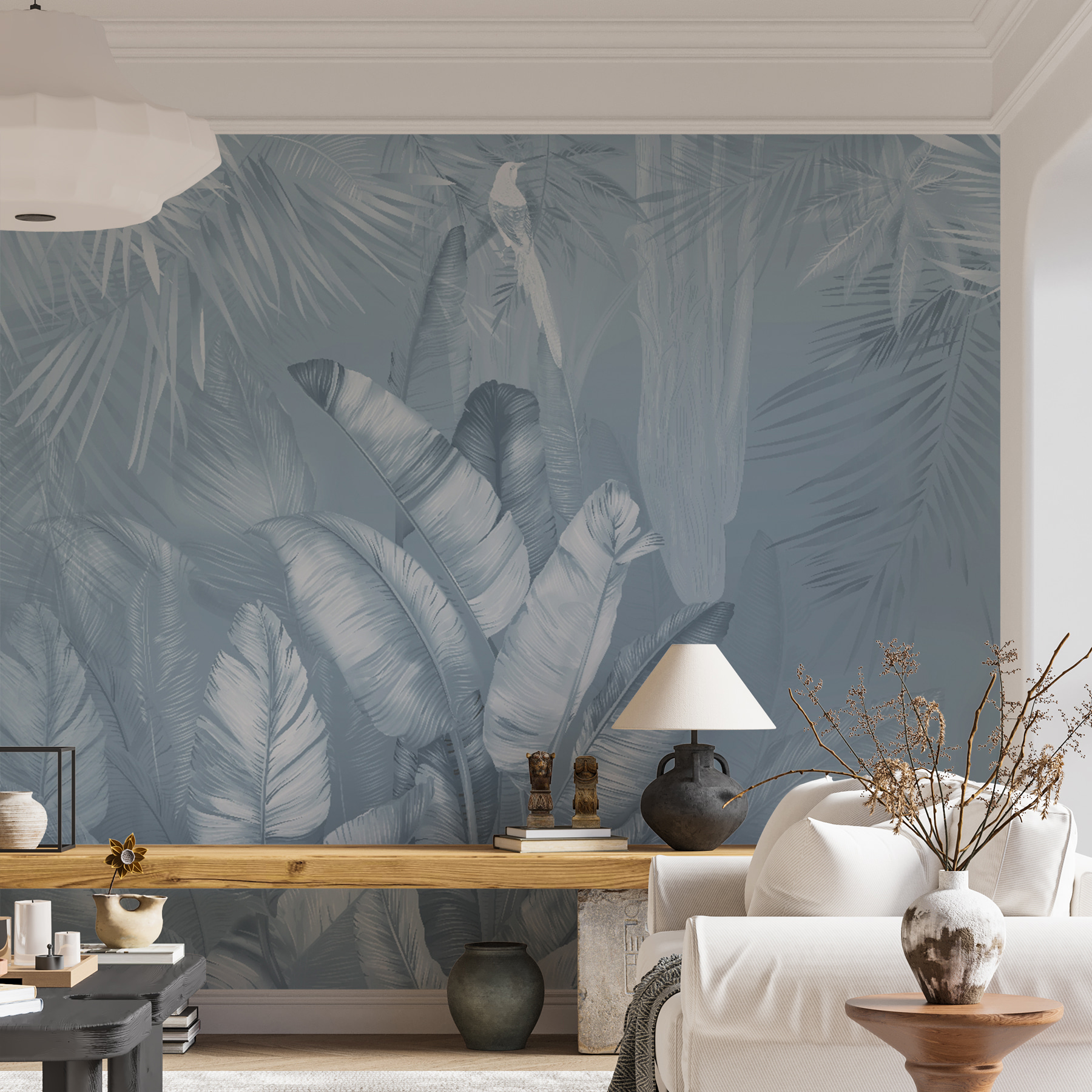 Wenn Sie einen Hauch von Dschungel in Ihren Raum bringen möchten, sollten Sie sich die “Fototapeten Tropical Foliage with Perched Bird” ansehen. Jedes Mal, wenn du den Raum betrittst, ist es, als würdest du in einen ruhigen Regenwald eintauchen. Stellen Sie sich vor, Sie trinken in aller Ruhe Ihren Sonntagmorgenkaffee, während ein Vogel lässig zwischen den üppigen Blättern sitzt – klingt ziemlich verträumt, oder? Die kühlen, detaillierten Blätter erzeugen eine solche Stimmung und verleihen jeder Wand einen frischen, exotischen Touch. Diese Fototapete ist nicht nur Dekoration, sie ist eine Flucht. Perfekt für jeden, der von seinem nächsten Tropenurlaub träumt.