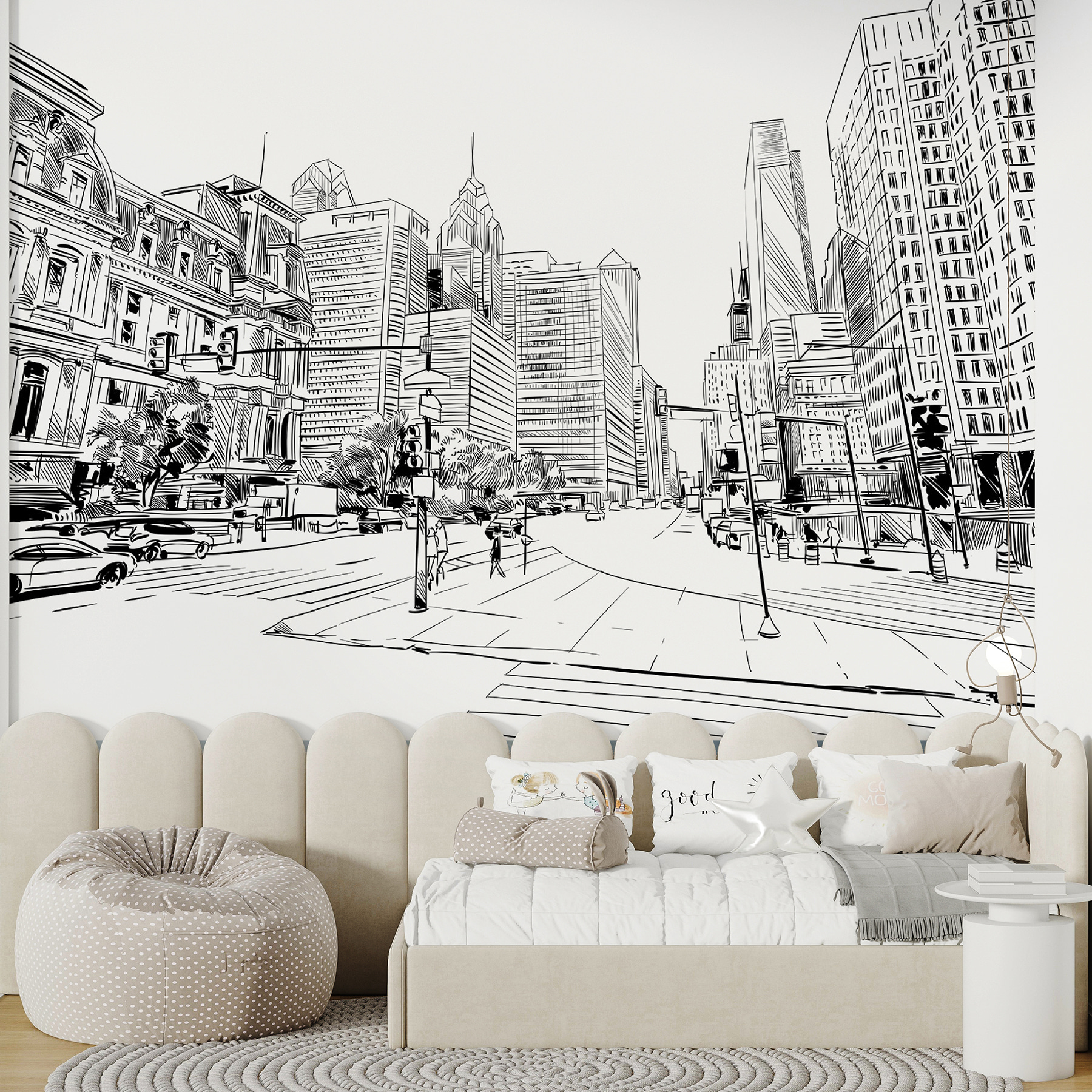 Hallo zusammen! Sieh dir diese coole Fototapete an – es ist eine Schwarz-Weiß-Skizze einer Stadtlandschaft, die aussieht, als wäre sie direkt aus einer Graphic Novel entsprungen. Kannst du dir vorstellen, damit aufzuwachen? Es ist, als hätte man eine belebte Stadt direkt in seinem Wohnzimmer, nur ohne den Lärm und die Menschenmassen. Perfekt, um Ihrem Raum etwas urbanen Schick zu verleihen, oder?