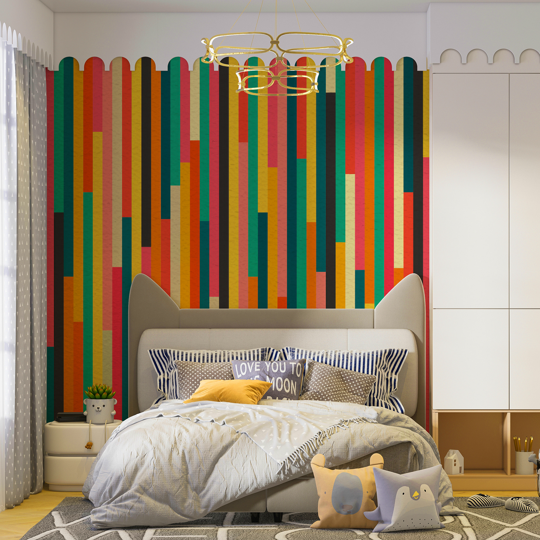 Verleihen Sie Ihren Wänden einen Hauch von Freude mit diesem lebhaften gestreiften Wandbild. Stellen Sie sich vor, Sie betreten einen Raum, der sich wie eine Party anfühlt – leuchtende Farben begrüßen Sie, und jeder Streifen bringt seinen eigenen Geschmack mit. Von leuchtenden Rosatönen bis hin zu beruhigenden Grüntönen – es ist, als hätte ein Regenbogen beschlossen, sich in Ihrem Raum zu vergnügen. Dieses Wandbild ist perfekt für alle, die einen Hauch von Skurrilität lieben, und kann ein langweiliges Wohnzimmer in eine Tanzfläche der Kreativität verwandeln. Stellen Sie sich gemütliche Abende mit Freunden vor, bei denen geplaudert und gelacht wird – diese Fototapete sorgt für die richtige Stimmung. Lassen Sie sich von ihr zu einem Lächeln inspirieren und zu “Wow”-Momenten anregen. Wer hätte gedacht, dass Wandkunst so stimmungsvoll sein kann?